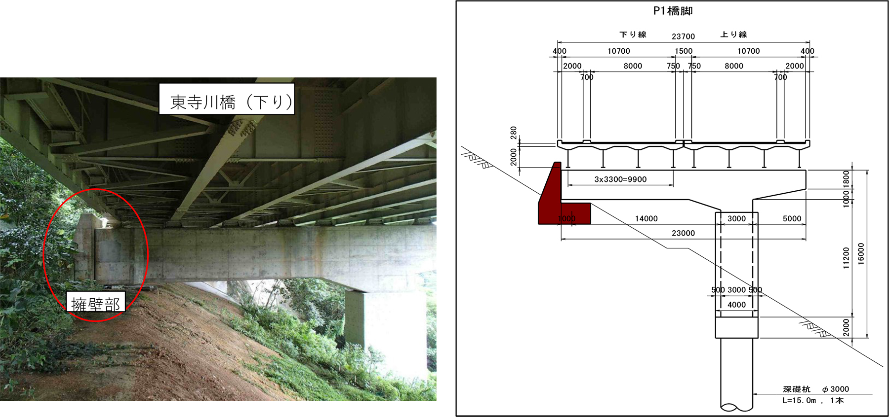 東寺川橋の損傷状況と補修状況