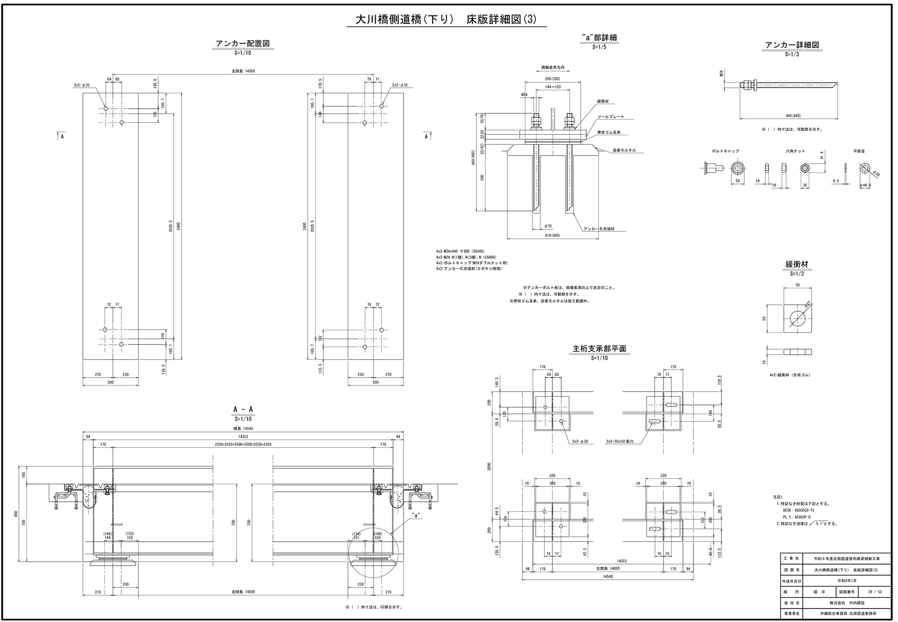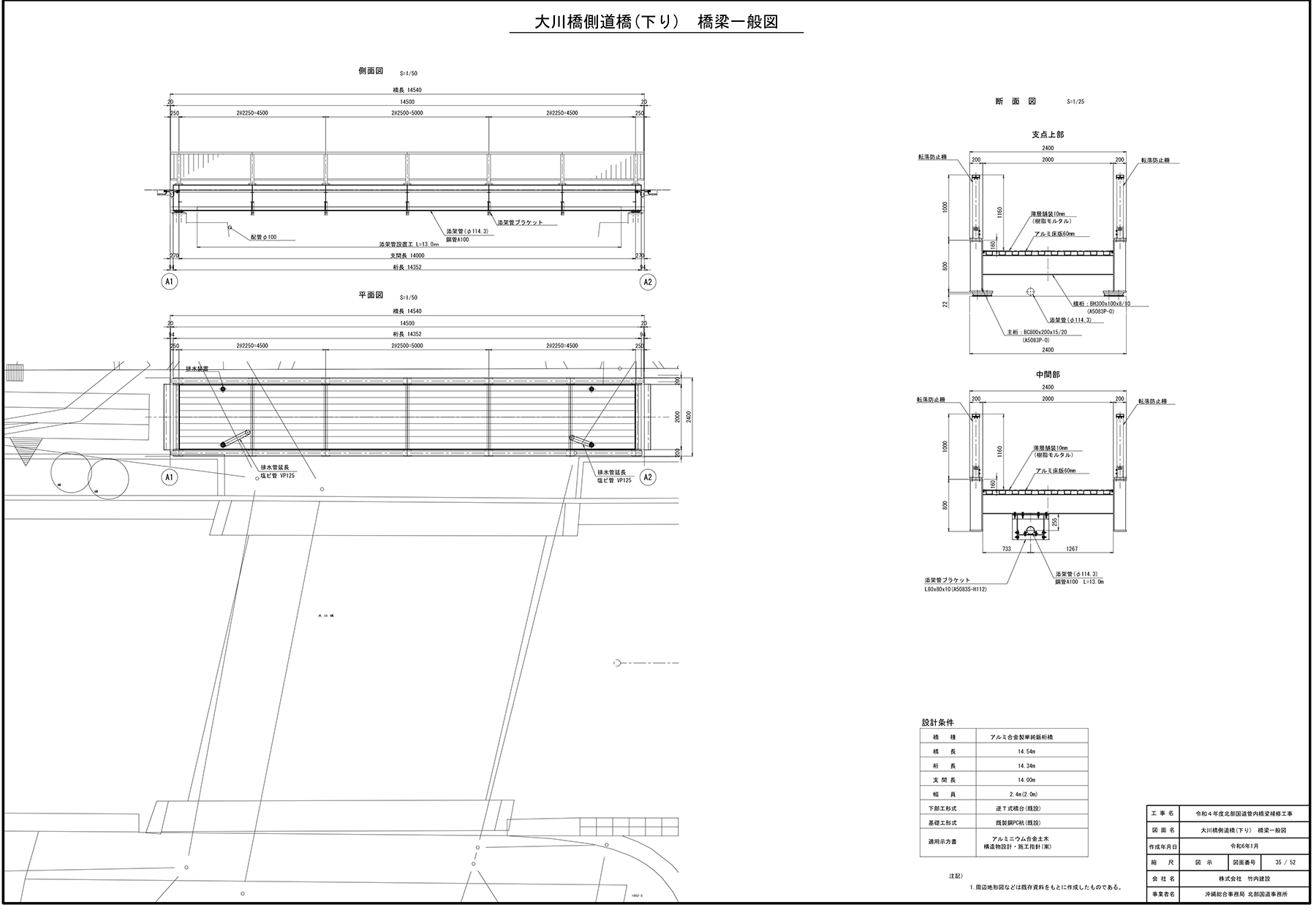 大川橋側道橋(下り線)の床版部詳細図
