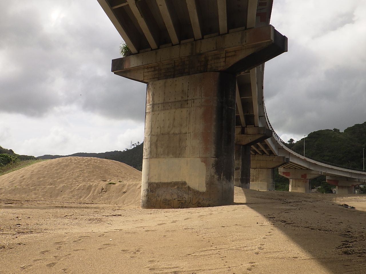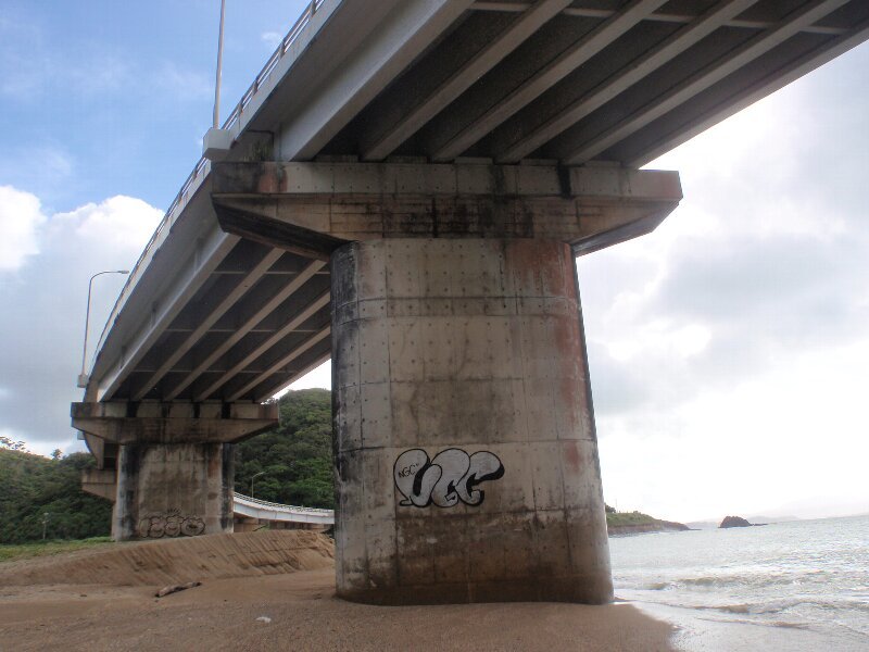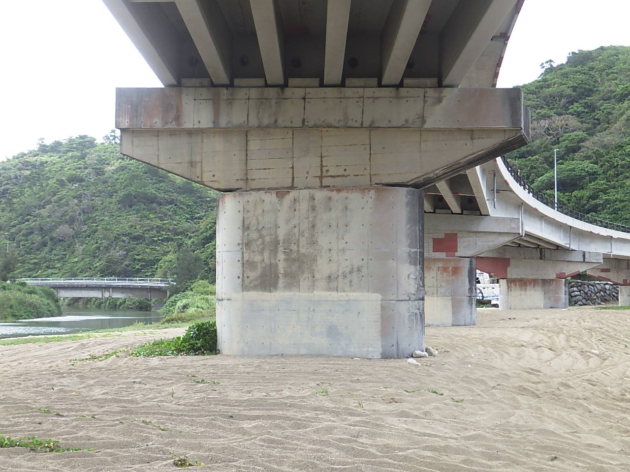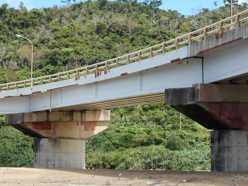 一番古い道路は、世冨慶橋で現在の国道58号に1953年に造られたRCT桁橋です。次いで比嘉橋も同年に建設されました。橋種はPCT桁です。58年には現在の国道329号に大川橋(RCT桁)が造られております。3橋とも現役で、目立った損傷はありません。
