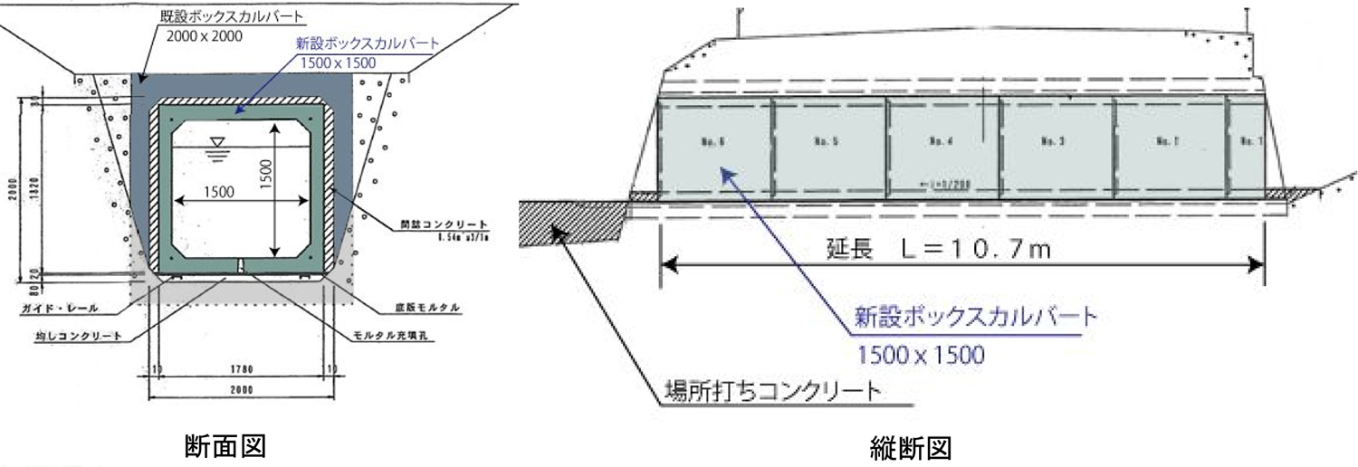 溝橋9は、内空断面の余裕を利用して、内側にさらにカルバートを構築