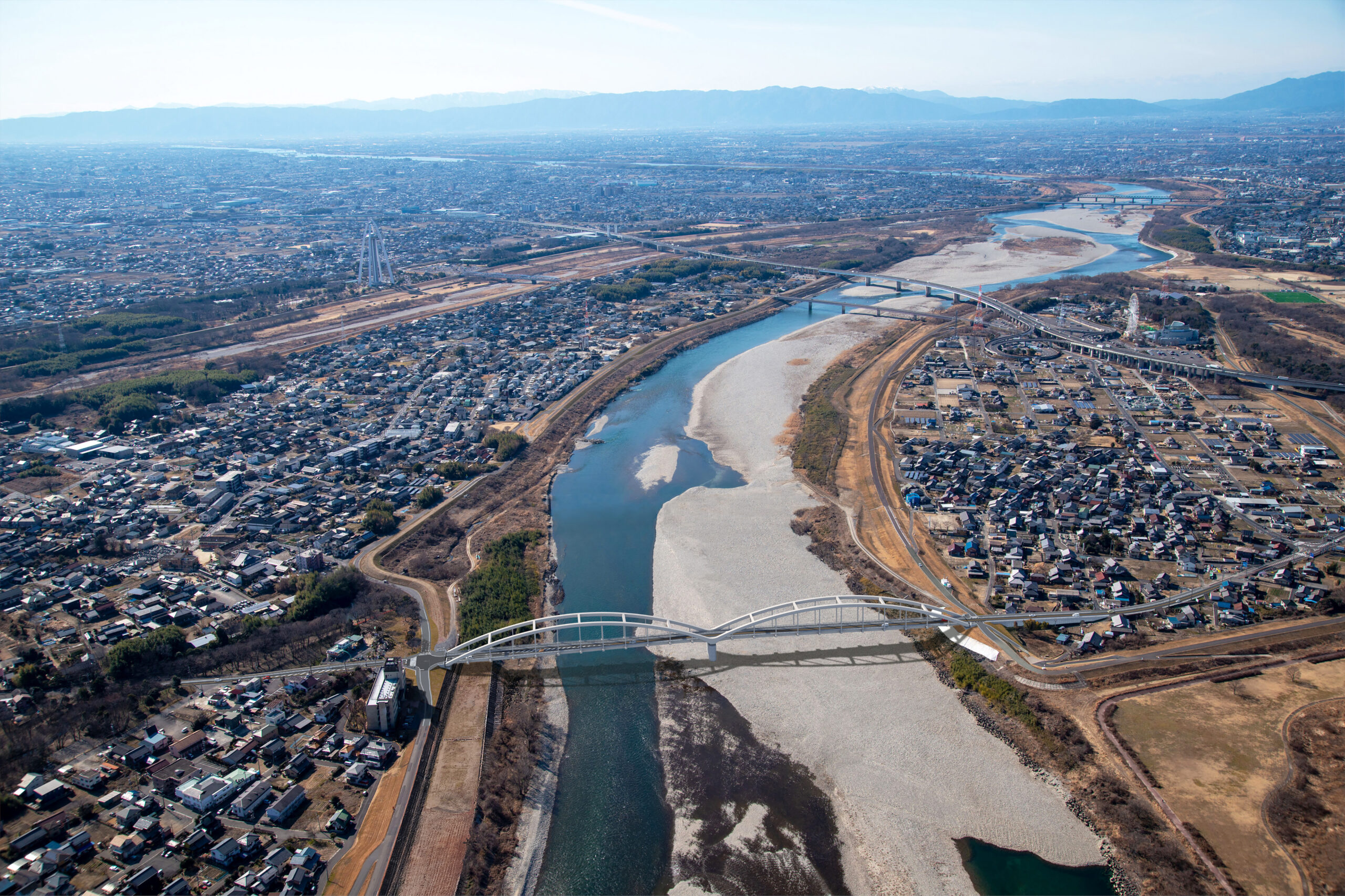 望月拓郎道路部長 令和3年5月の出水により、岐阜県が管理する一般県道松原芋島線の川島大橋が被災し、橋体が大きく傾斜する被害を受けました。被害規模が大きかったことから、復旧については国が権限代行により実施することとなりました。被災前の川島大橋は河川内に橋脚が4つある5径間連続下路トラス橋でしたが、被災原因除去の観点から橋脚数が1つの2径間アーチ橋を選定したほか、洗堀の危険性を低下させるため、澪筋を避けた橋脚位置にする等、再度災害の防止に努めました。