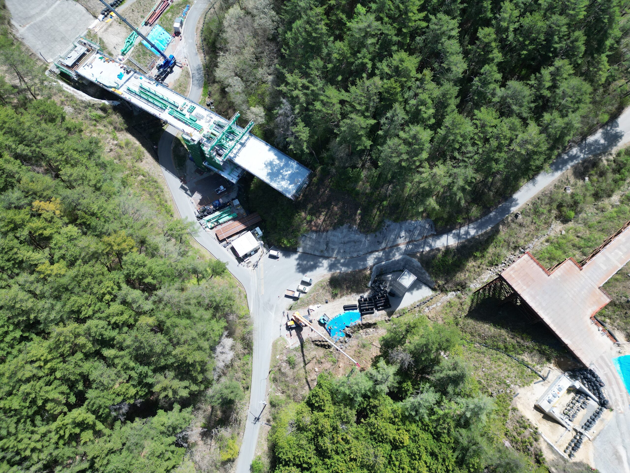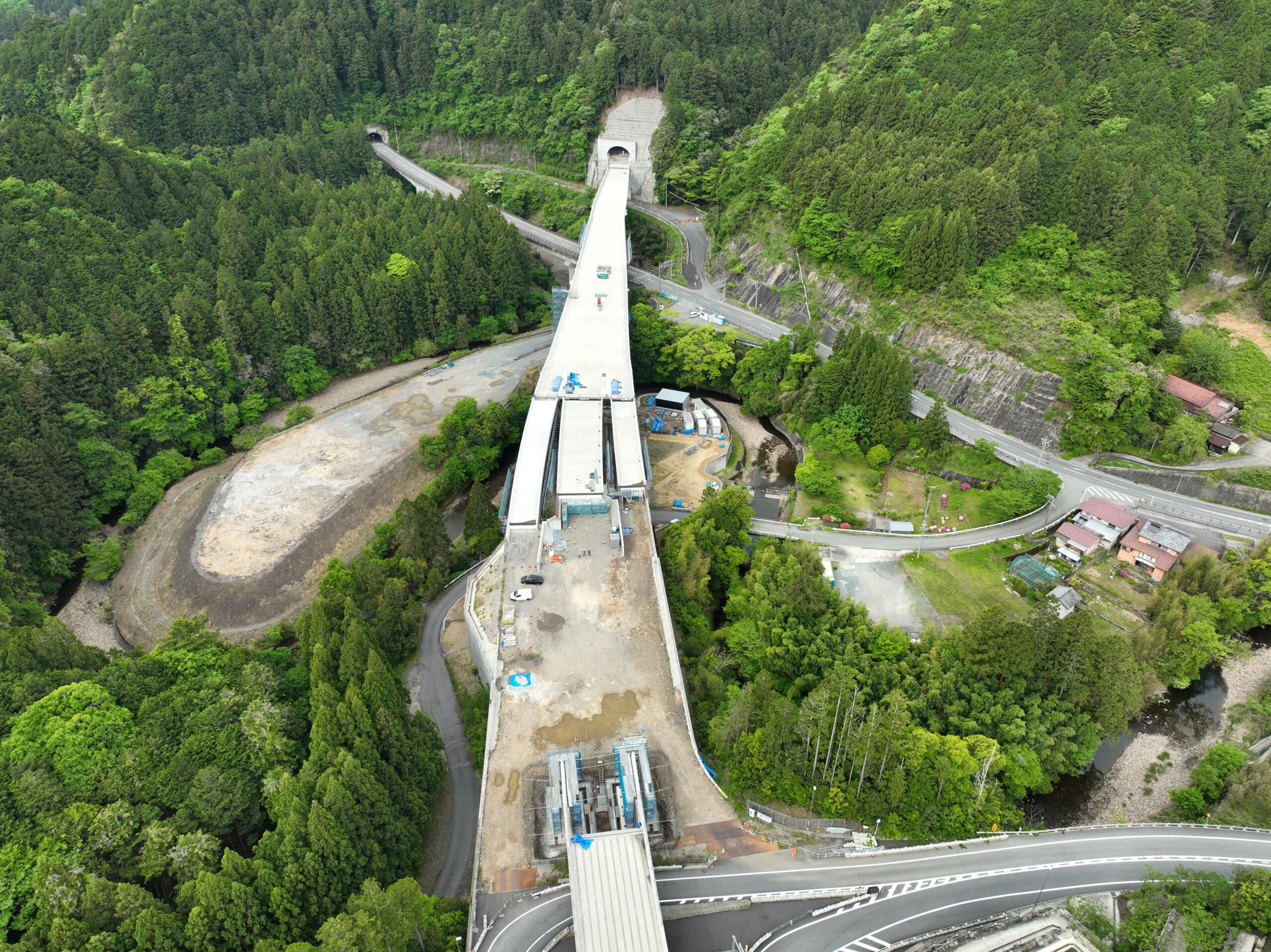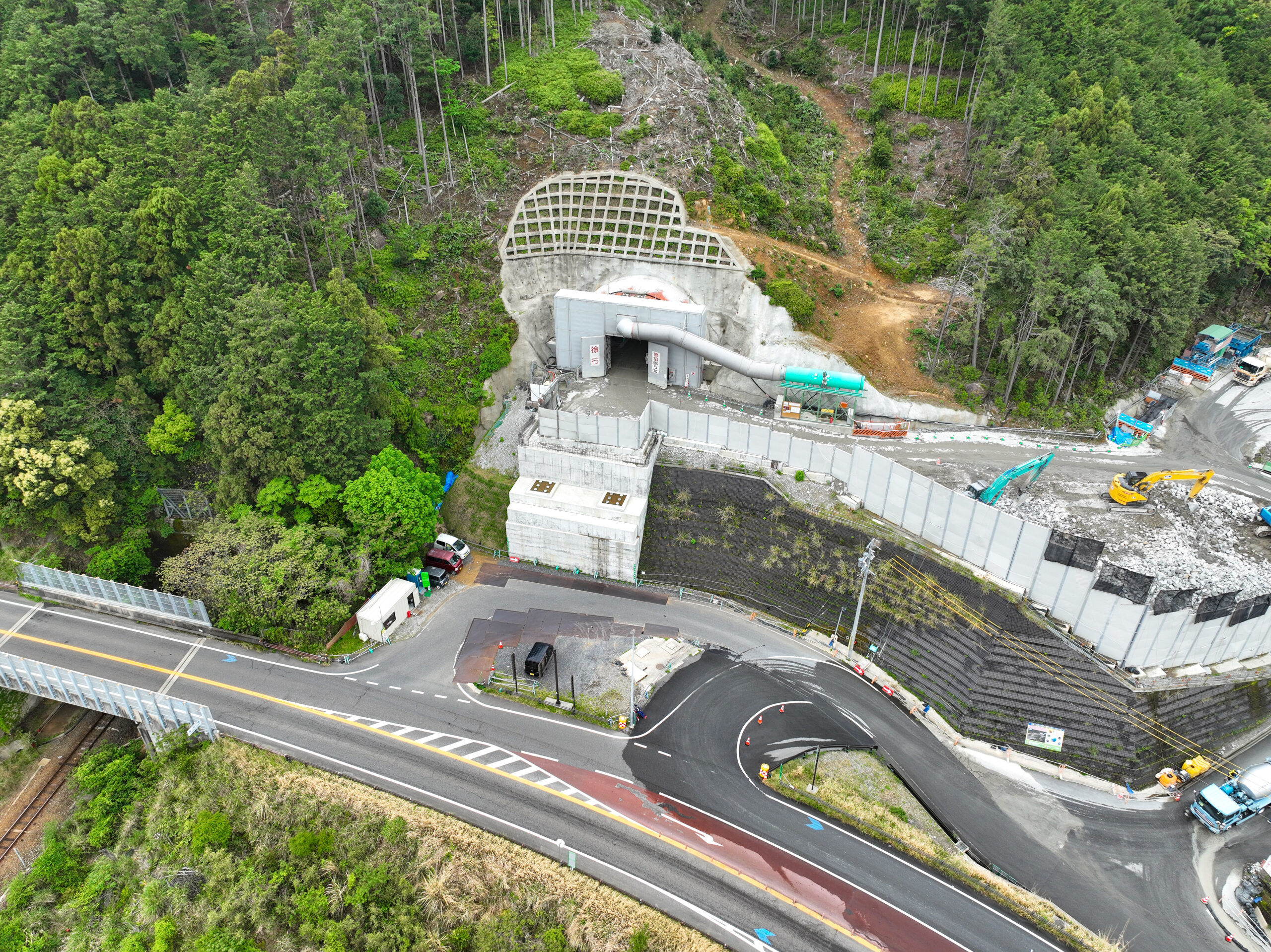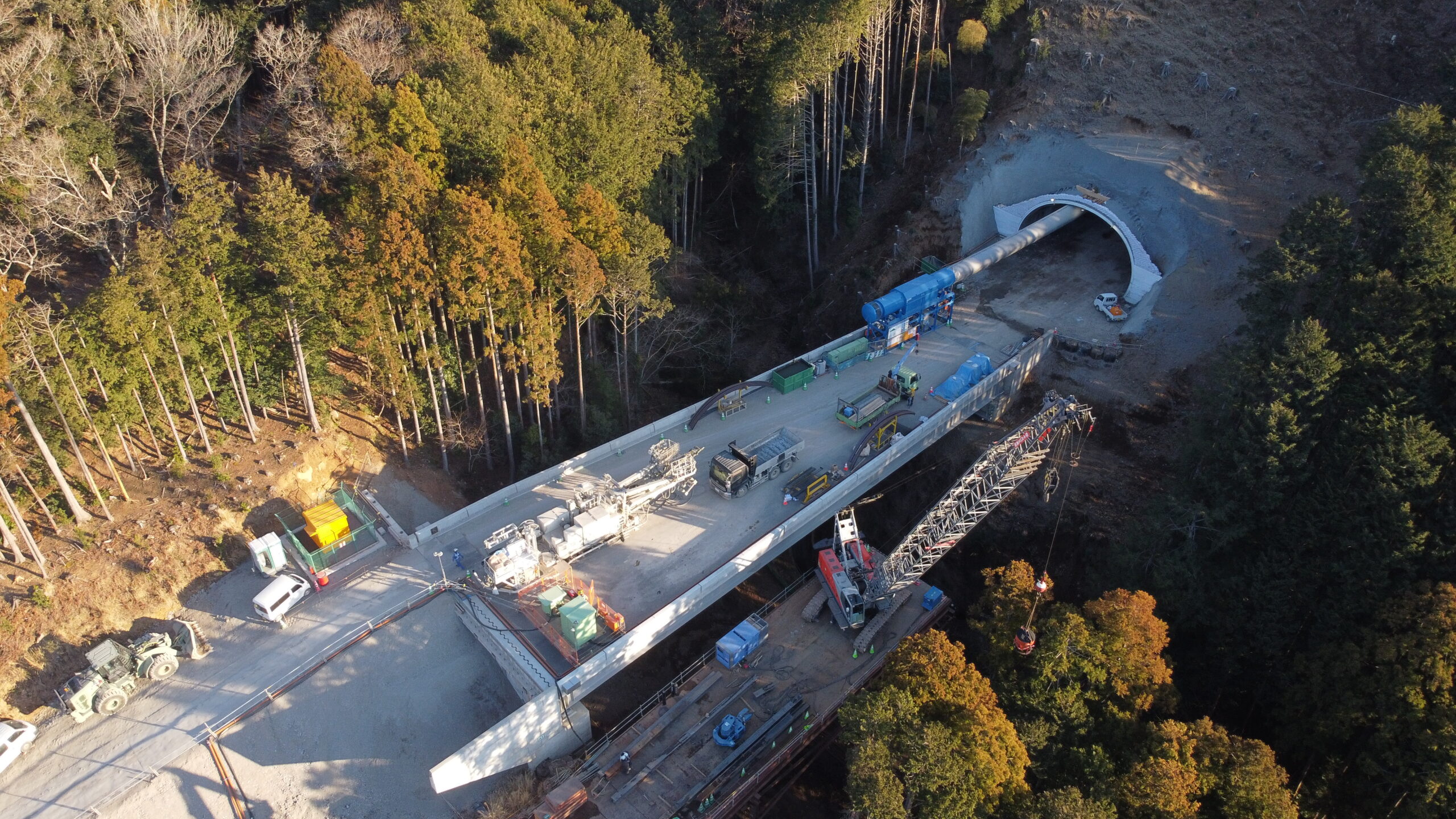 三遠南信自動車道 青崩峠道路の青崩峠トンネルは、中央構造線の影響を受けた脆弱地盤が出現することに加え、土被りが600mを超える厳しい条件下での施工が必要とされたトンネルです。掘削には約4年かかりましたが、令和5年5月に貫通しています。