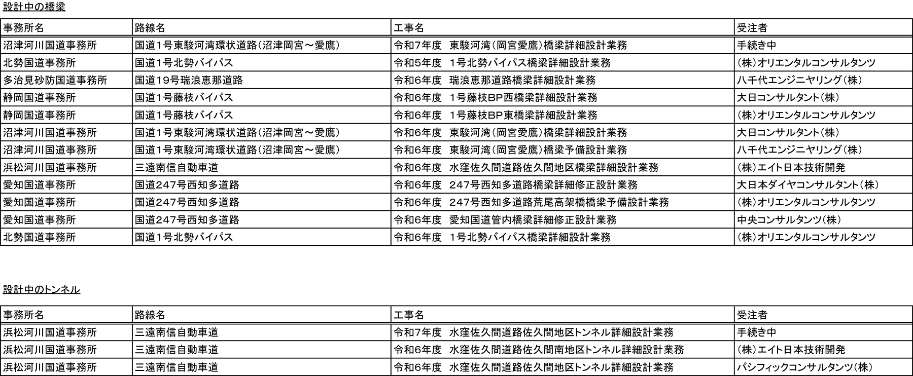 2025年度設計予定のトンネルは、三遠南信の水窪佐久間道路におけるトンネル詳細設計を予定しています。