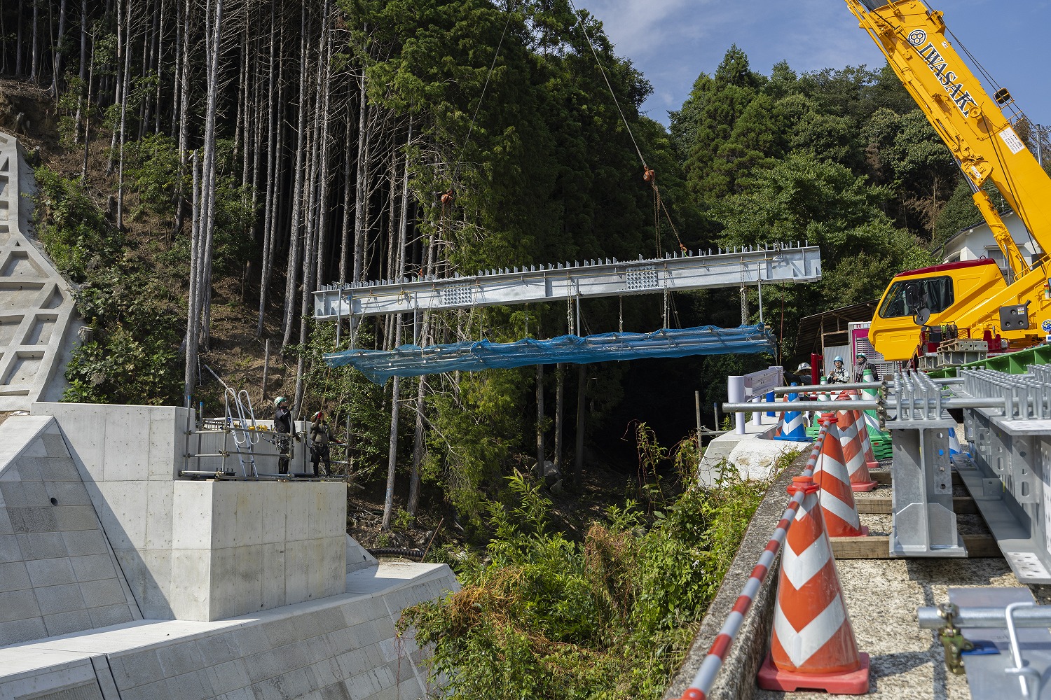 エム・エム ブリッジは、広島県西部建設事務所が進めている二級河川瀬野川水系水谷川の砂防工事に伴う、砂防ダム管理道路の一部を担う鋼橋の上部工を進めている。水谷川渡河部に架かる橋梁は、橋長11m(幅員4m)の鋼単純合成H桁橋という小規模なものだが、同社では初めて女性(設計・施工及び受注営業)のみで一気通貫して担う取り組みを実践した。さらには鉄鋼構造プロセスに置けるCO2排出量を削減した鋼材であるグリーン鋼材を採用している。その内容などについて、同現場代理人の榎園麻実氏に話を聞いた。(井手迫瑞樹)