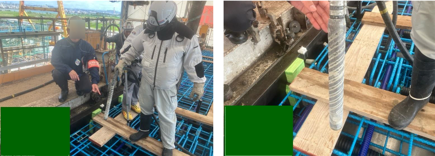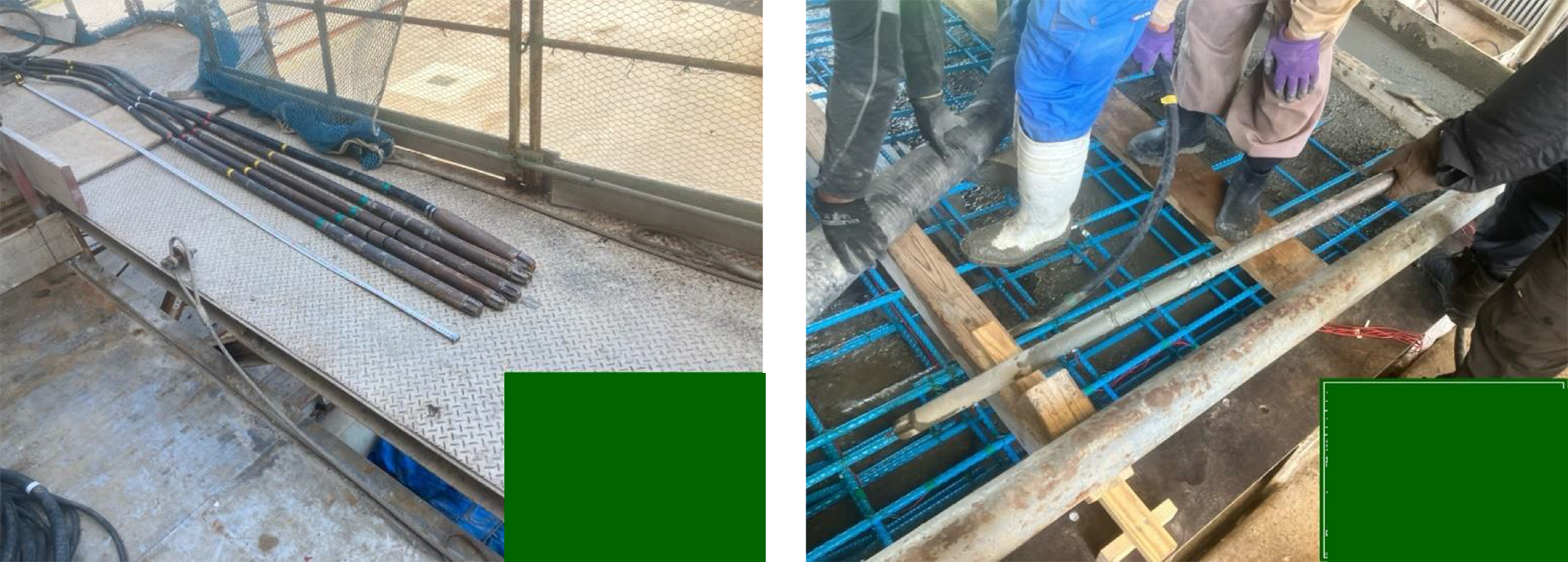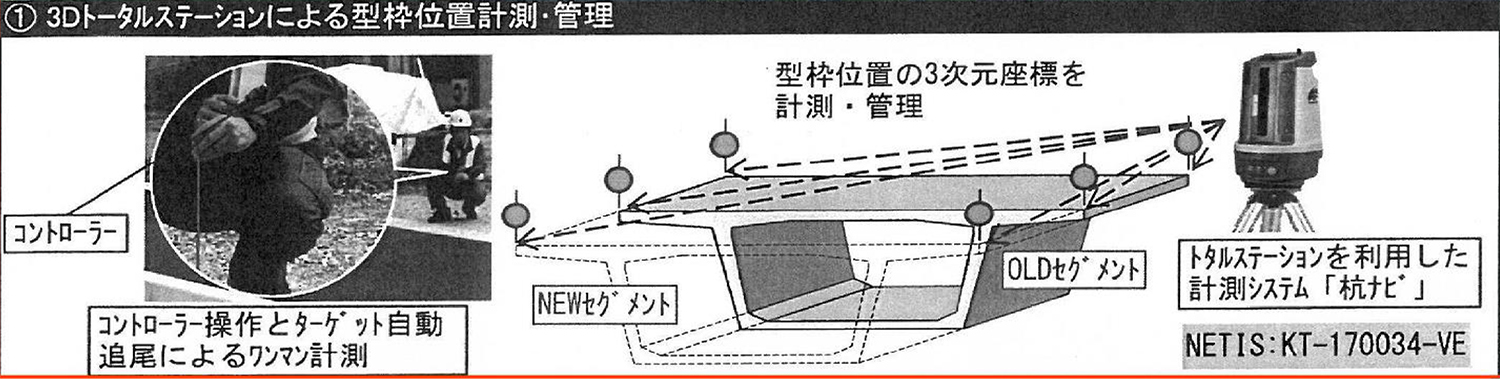 例えば、セグメント桁製作時の型枠セットに当たって、3Dトータルステーションを活用しています。また、粘度の高い高強度フライアッシュコンクリートを締め固めるために、特殊なバイブレーター(スパイラル型内部振動機)を採用し、打設時の充填管理のために、充填検知センサーを用いました。