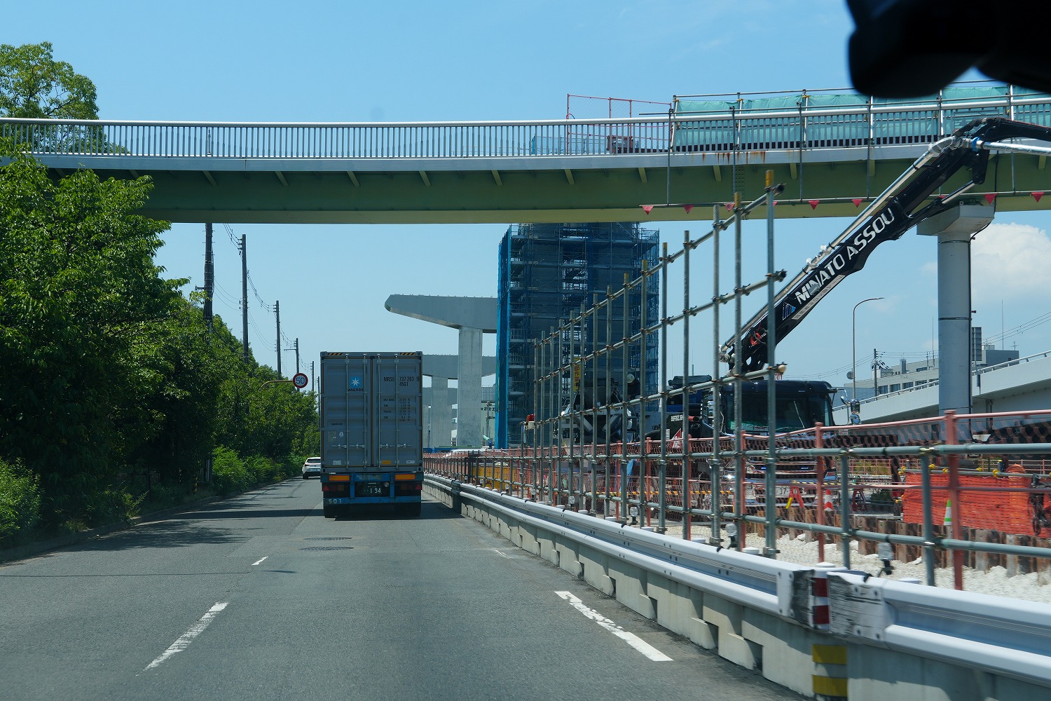 上写真は六甲アイランド北ICから六甲アイランド北臨港道路を進んでいる状況(井手迫瑞樹提供)