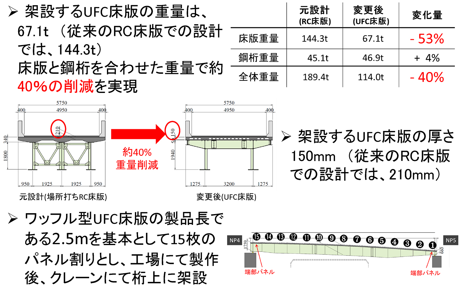 ただ、やはりイニシャルコストがまだ、既存の床版形式よりも高い状況です。委員会の先生の中にはライフサイクルコストを重視すべきとのご助言もありますが、やはりUFC床版を使うというところまでは至っておらず、検討の一つのうちという形にとどまっています。やはり初期コストや、ライフサイクルコストを考えて、最適な床版形式を選ぶ必要があるのかな、と考えています。いずれにせよ本事業は東側から進捗しており、六甲アイランド地区以外の工事着手にはまだ時間もありますので、その時間を活用したいと考えています。その間にUFC床版も徐々に普及していくこともあると思います。沢山使用されればスケールメリットで、価格も安くなっていくと思いますので、そうした状況も踏まえて床版形式は選定していきたいと考えています。