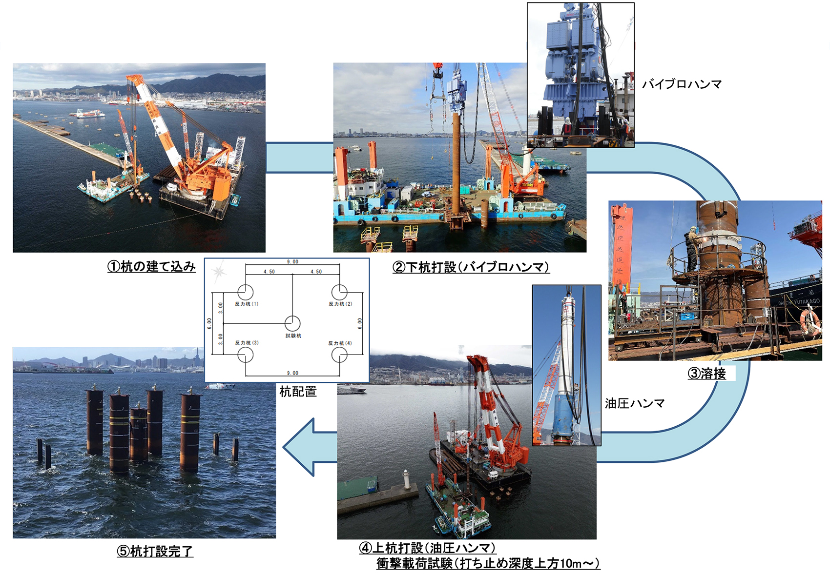 石原 試験杭を施工していますので、杭を打つこと自体は、それほど難しいことではないと考えています。実際の打設では、バイブロハンマーと油圧ハンマーで施工し、50mを超える杭長が全長貫入できています。施工は50m超を一気に打つのではなく、何段かに分けて溶接で継手して打設していく形を想定しています。ただ、試験施工は1本打ちであり、矢板形状に杭を組み合わせて打っているわけではないので、その辺の照査は今後の課題です。