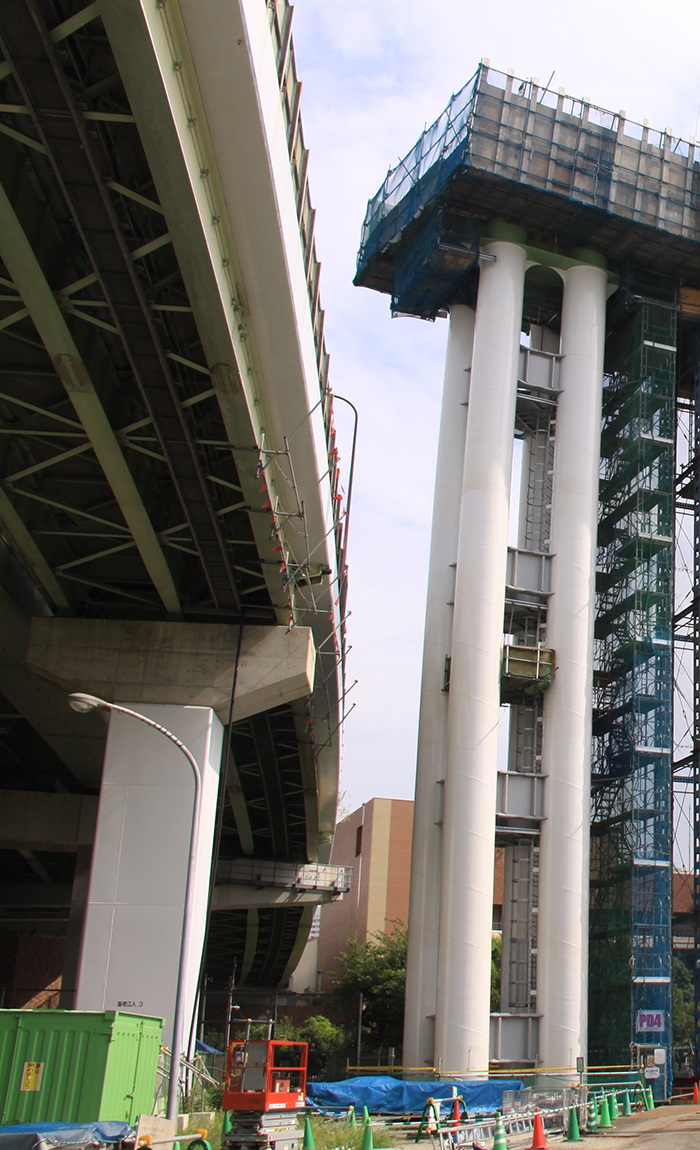 糸川 軟弱地盤であるから鋼管集成橋脚ということでは特にありません。鋼管集成橋脚も、元々は阪神淡路大震災で阪神高速道路が大きな被害を出したということもあって、その経験から生まれた新しい橋脚構造です。頑丈に橋脚をつくるのではなく、一部に弱いところをつくって、そこが先行座屈することで、しかし橋梁全体系の耐震性は確保するというコンセプトで設計した橋脚形式です。