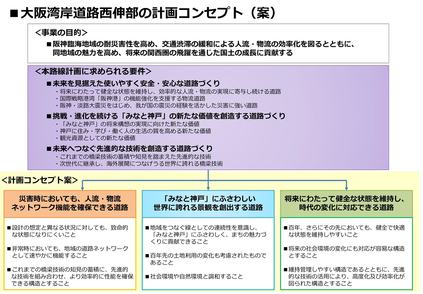 糸川 コンセプトは、阪神淡路大震災の教訓やみなと神戸の地域特性、これまで建設してきた道路橋梁等の知見を踏まえて、3つのテーマを提示しています。
