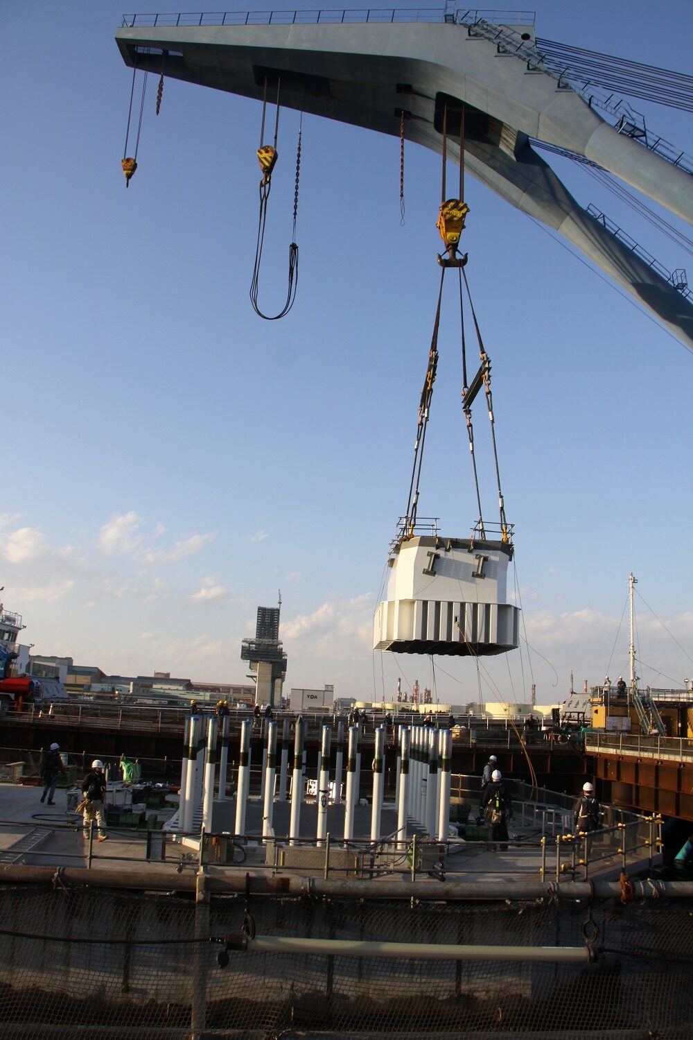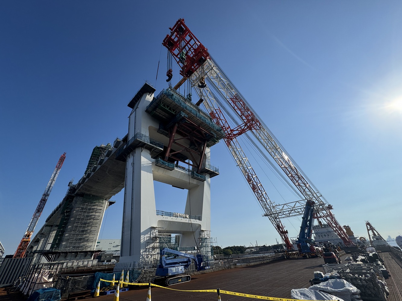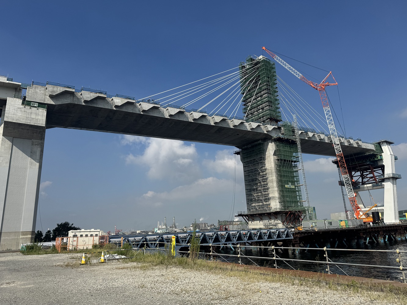 川崎港東扇島~水江町地区臨港道路整備事業の主塔基部施工状況