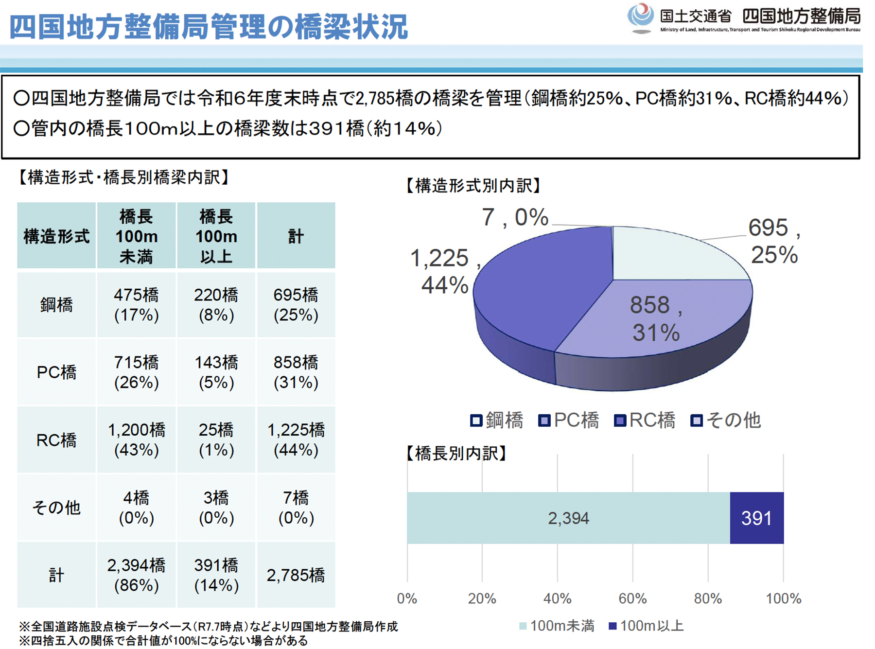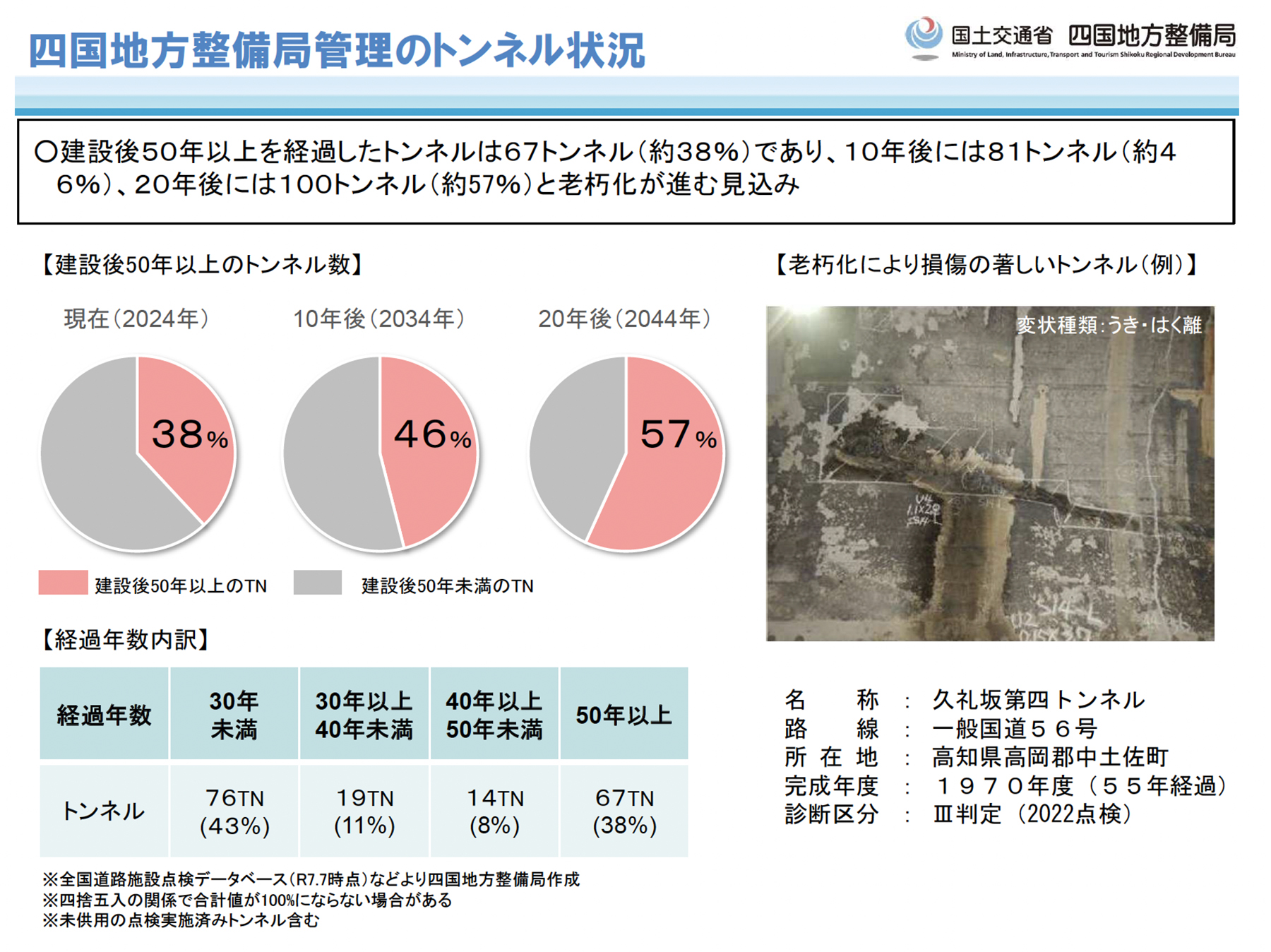 福本 令和6年度末時点で、四国地方整備局が管理する橋梁・トンネルは、いずれも老朽化が進んでおり、今後の維持管理の重要性がさらに高まっています。