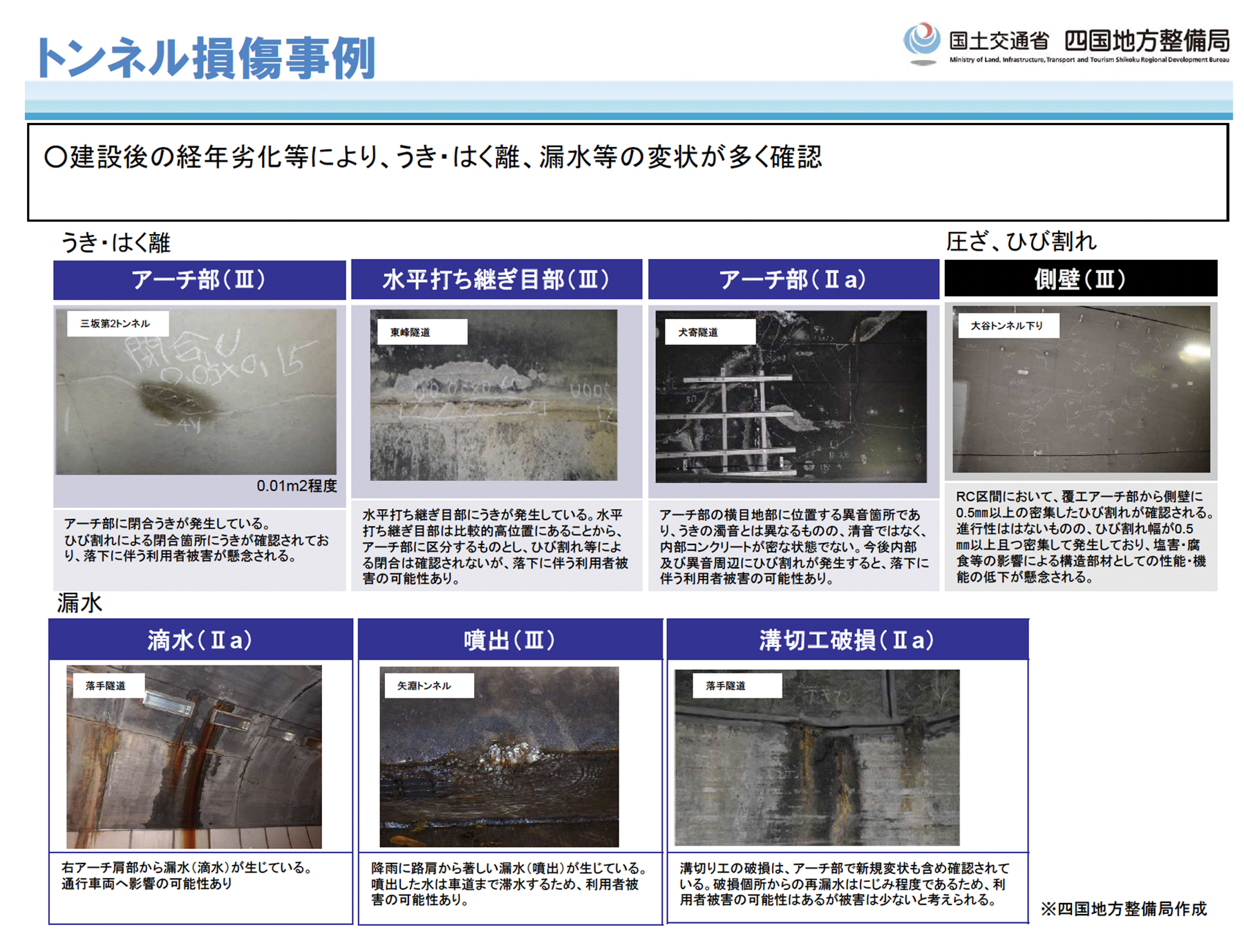 福本 直轄国道は地域の重要な交通ネットワークであり、その安全性と信頼性を確保するため、四国地方整備局では定期点検によって施設の状態を把握し、その結果を踏まえて個別施設計画を策定しています。点検で判定区分Ⅱ(予防保全段階)やⅢ(早期措置段階)となった橋梁・トンネルを中心に、必要な修繕を行う方針で計画的に対策を進めています。