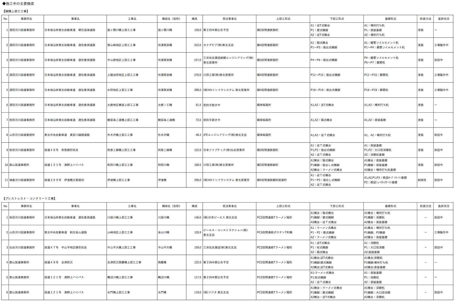 施工中の橋梁上部工は14橋(鋼橋8橋、PC橋6橋)