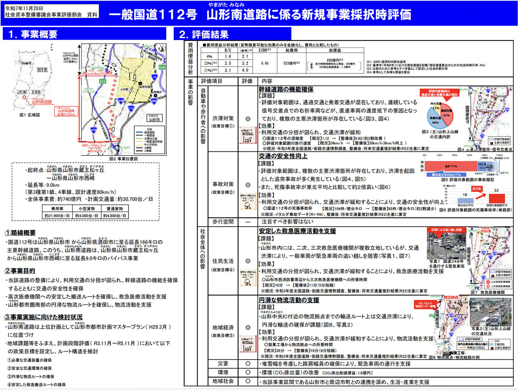 2025年度の新規事業化区間としては、秋田県の国道13号横手北道路、山形県の国道112号山形南道路の2区間で事業に着手しました。