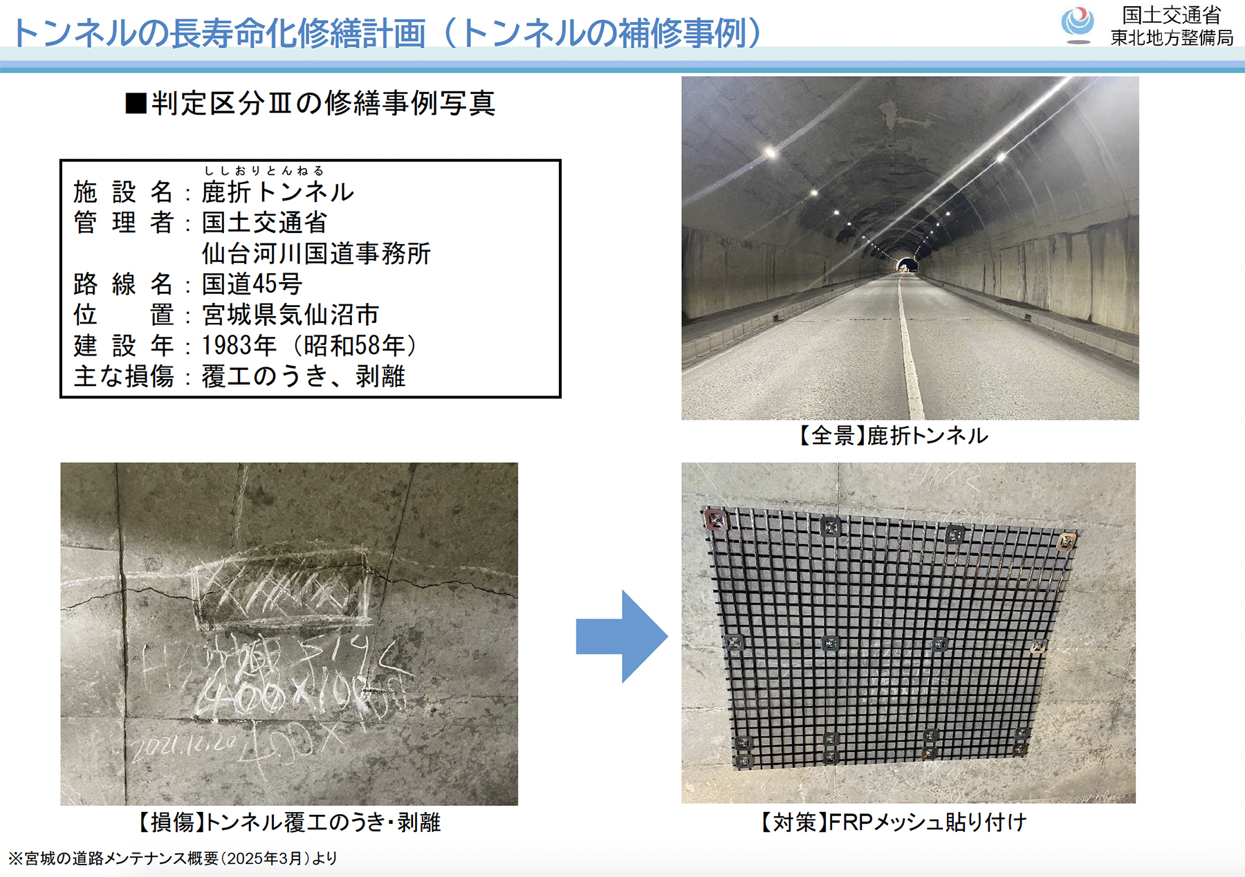 −−トンネルの点検状況や、長寿命化修繕計画に基づく補修・補強の進捗について教えてください。