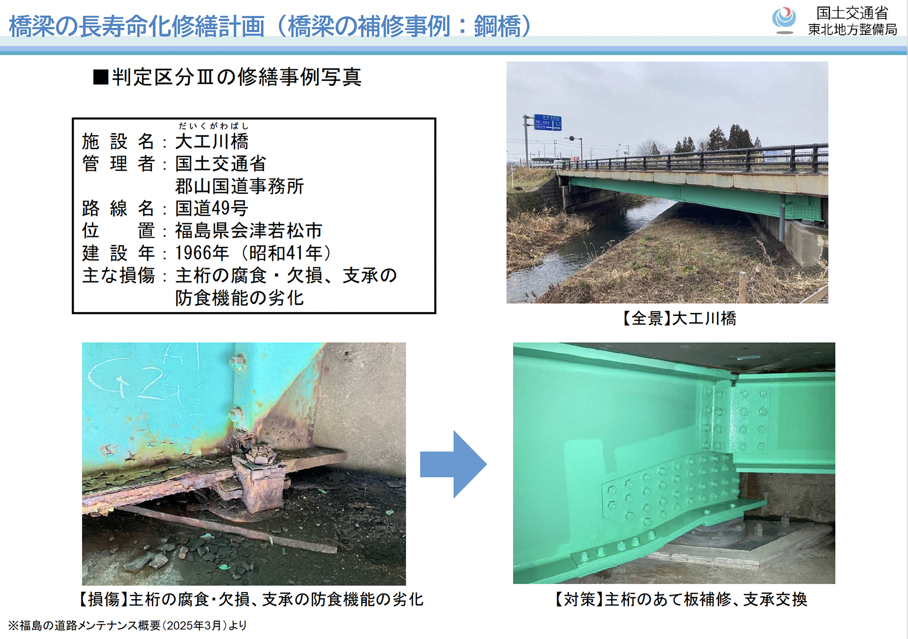 井上 東北地方整備局では、橋梁ごとに個別施設計画を策定し、長寿命化に向けた修繕を計画的に進めています。