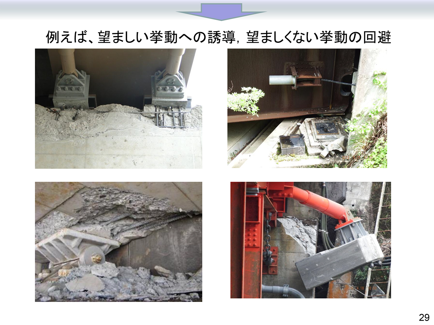 こうした考え方で基準の要求も普遍化しつつ継続的に発展できるようにしようとすると、耐震設計編という枠組みが時流に合わなくなってきたということではないでしょうか。各橋梁で想定されるリスクは様々です。実際、最近は地震だけではなく、洪水でも被災する例も少なくないです。火災が気になるのであれば火災を考えればいい。鉄道が突っ込んでくるリスク、噴火、津波など、何が起こるかわかりません。税金を使って管理している管理者が、個々の橋について「ここはこういう稀な状況に対して、こういう性能を持たせよう」と判断してやればいいわけです。