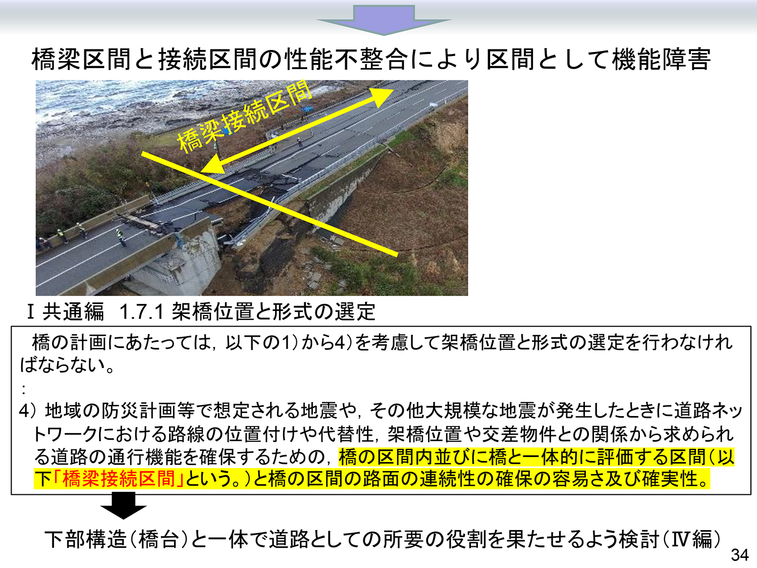 さらに、橋全体としての性能を、上部構造、下部構造、上下部接続部の性能の組み合わせとして評価することを義務付けたことは、従来一般的でない新しい形式の橋梁を提案することに対して基準に照らして所要の性能が満足されることが確実に照査され提案しやすくなったという点では、自由度の拡大と運用の適正化の両立をはかる大きな改定だったと思います。今回の改定では、さらに機能系統という概念を導入するなど大きな改定が行われました。また、性能規定型基準として規定体系が充実して完成度が高まるなかで、今まではあまり見えてこなかった特定の設計分野にかかわる規定だけを集約することの不合理な面も出てきたことから今回の改定では耐震設計編の内容を規定体系に沿って再編され、結果的に耐震設計編という編はなくなることになりました。意味合いとしては性能規定化が完成に近づいたことで、結果的に発展的に解消されたという感じでしょうか。