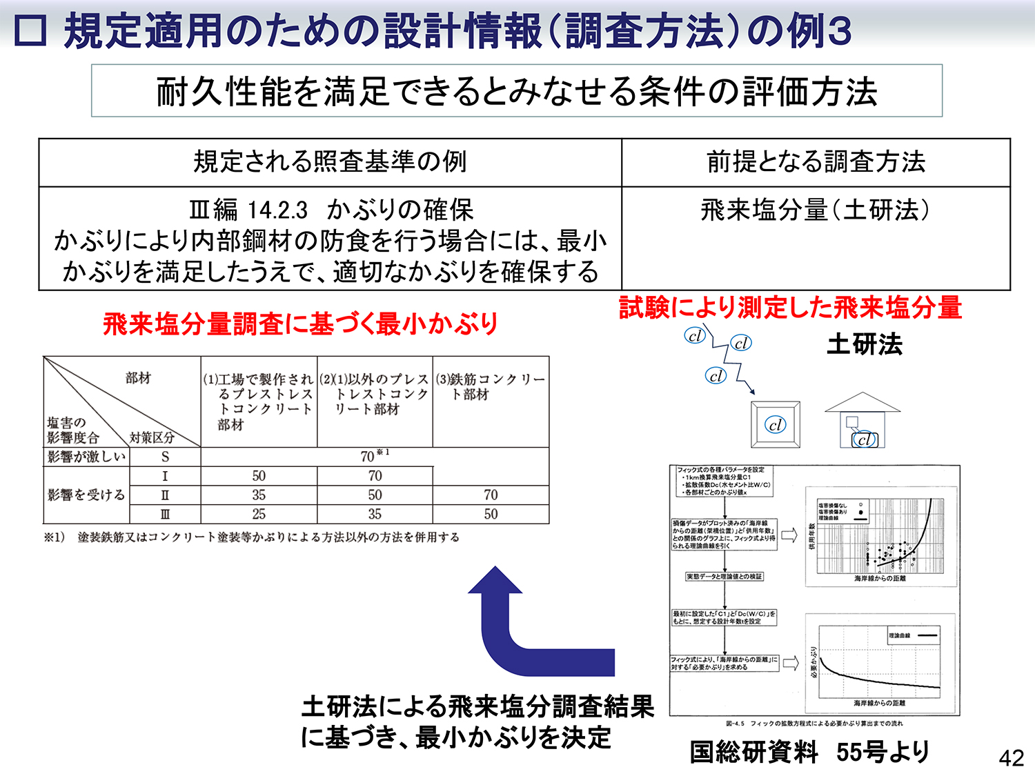 玉越 仕様規定であれば仕様と一致していれば必要な性能はあるとみなせることになります。しかし性能規定型の技術基準ですので仕様や手段には自由度がありますので、要求性能が満たされていることについては設計の中で行われていなければなりません。よく基準の運用の場面では、「設計」と「照査」という言葉が区別なく使われていますが、これは、「基準に適合する設計を行う」ことは、イコール「基準を満足していることを照査する」ことだからです。