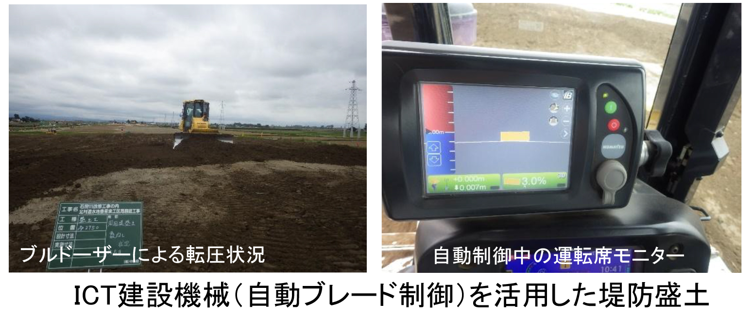 周囲堤の施工にあたっては、関連する工事車両全体の運行管理システムを導入することで渋滞を緩和し施工の効率化や周辺への振動・騒音の軽減を図るとともに、BIM/CIM(3Dデータ)を活用し排水門の鉄筋干渉チェックを行うなど新技術を導入したICT施工により工事を進めています。