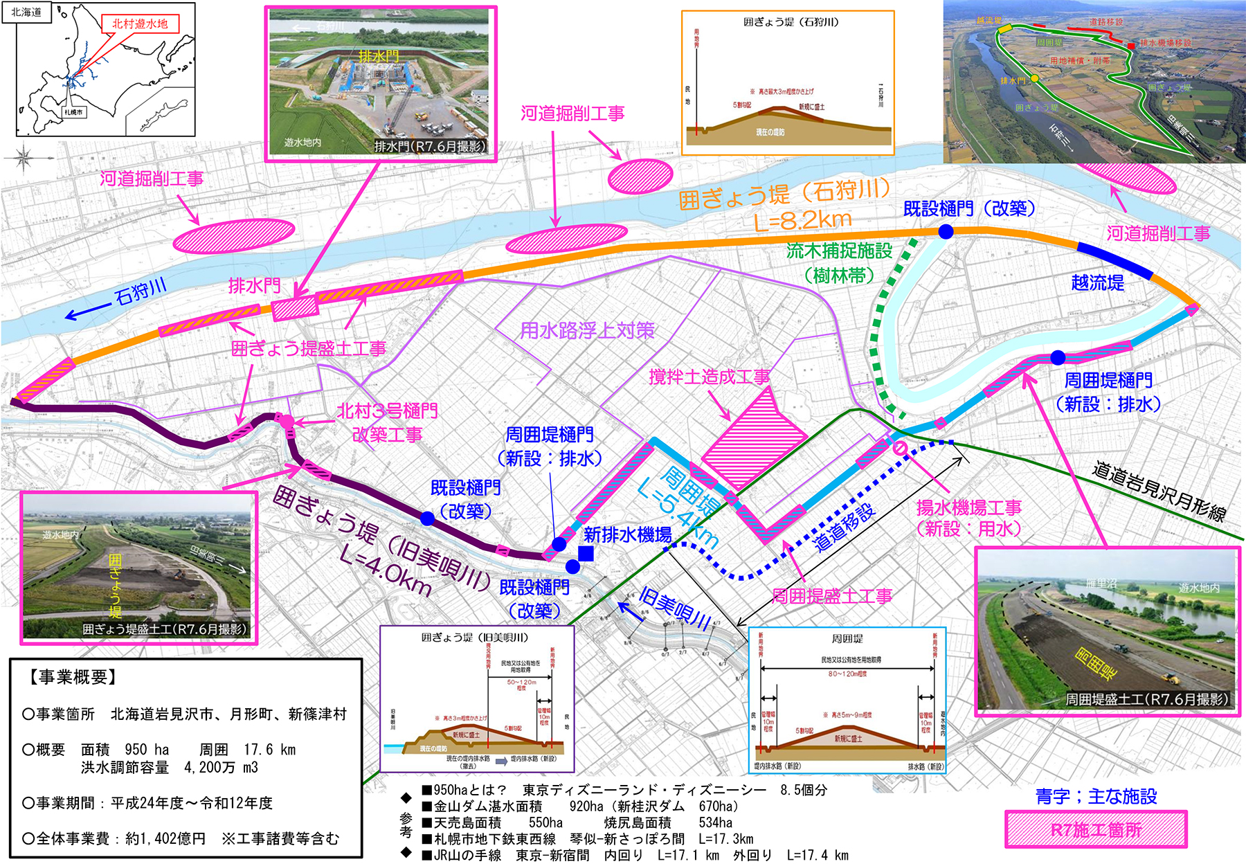 北村遊水地や幾春別川総合開発などの大規模事業を実施