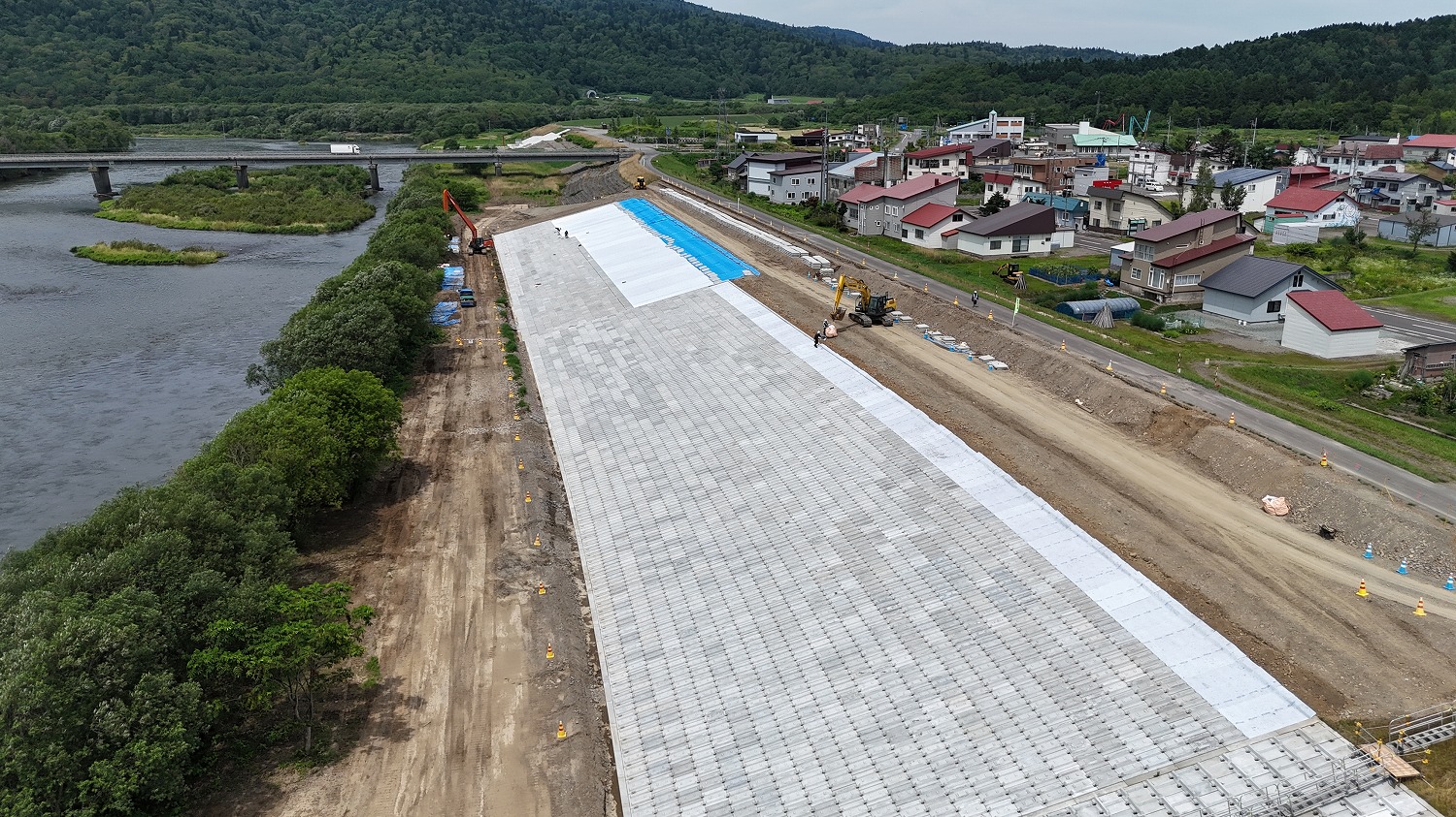 橋の架設は全て完了しており、現在は前後の盛土工や、舗装工などを行っています。