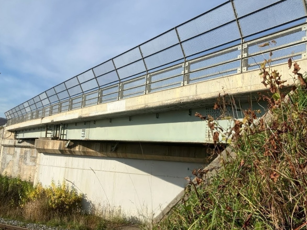 比布跨線橋の全景と補修状況