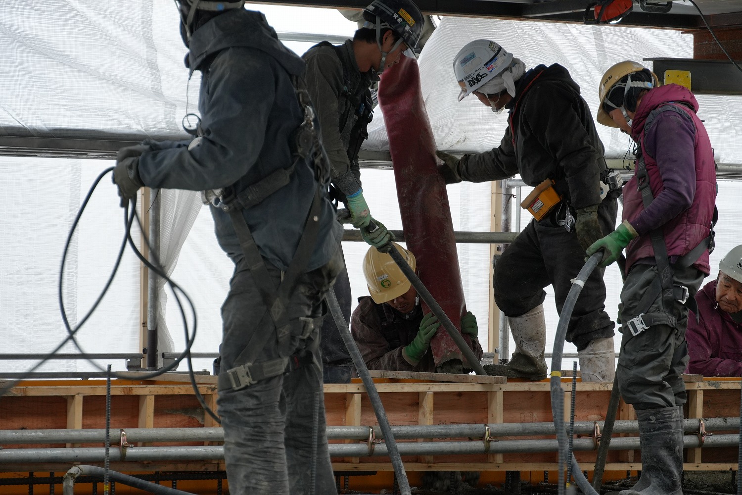 施工は全て現場打ちであり、一昨年の10月下旬から12月末にかけて打設を行いました。