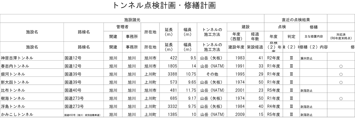 2巡目点検でⅢ判定8トンネル、4トンネルで対応済み