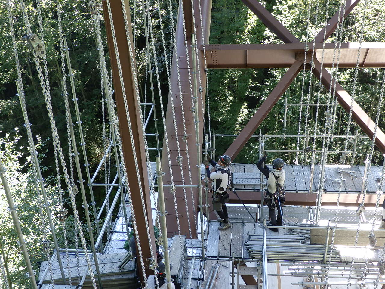 2024年度の塗装塗替え実績は、両橋で約6,500m2です。令和7年度は、同じく約4,700m2を予定しています。防食仕様は、鋼道路橋防食便覧をもとに決定しています。新しい重防食手法は、特段採用しておりません。