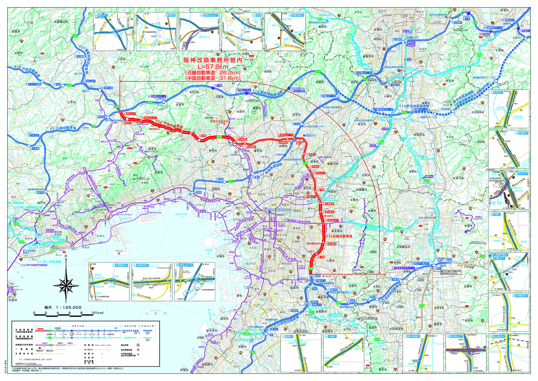 中国道および近畿道 トータル57.8kmの改築事業を担当