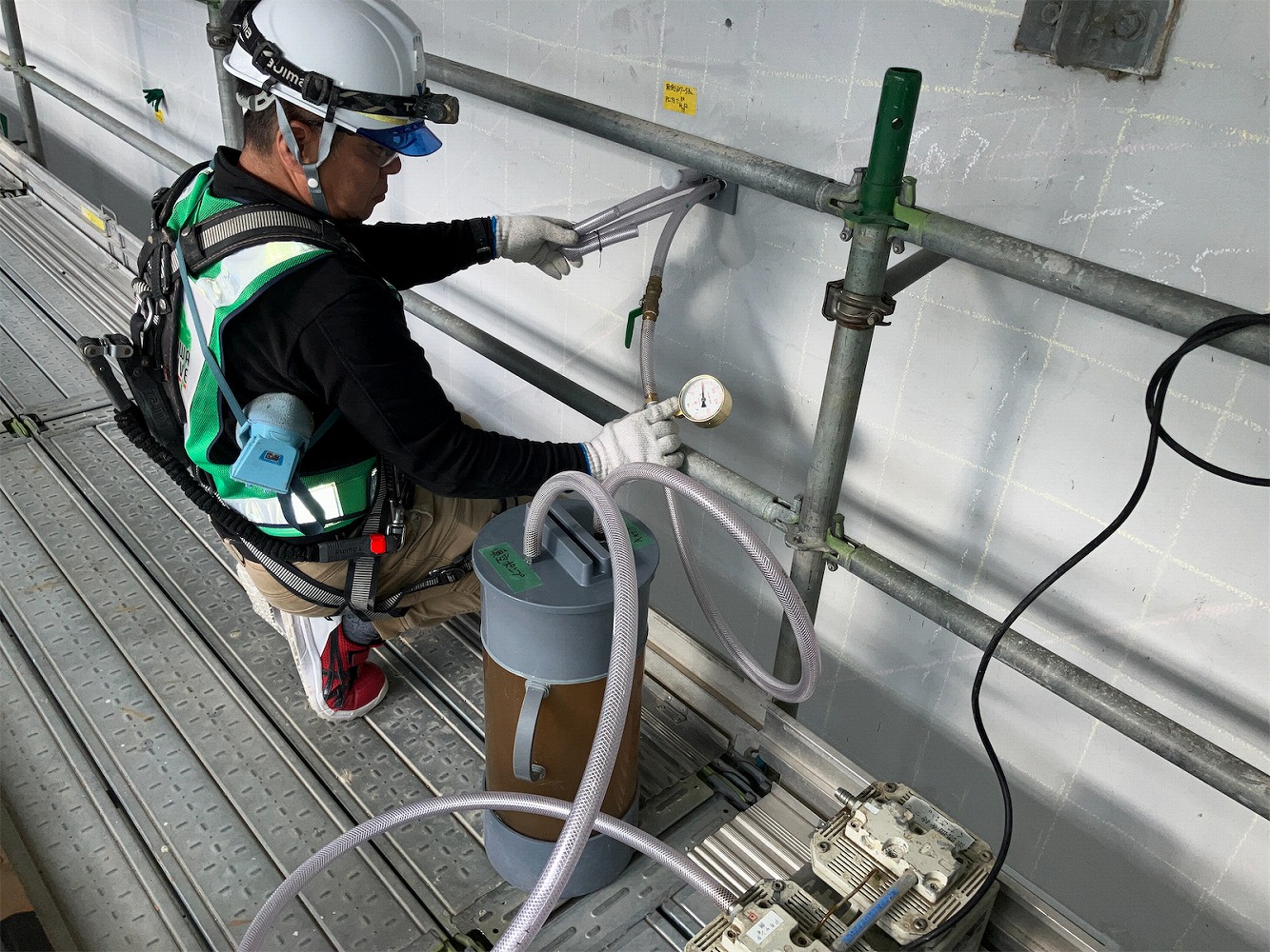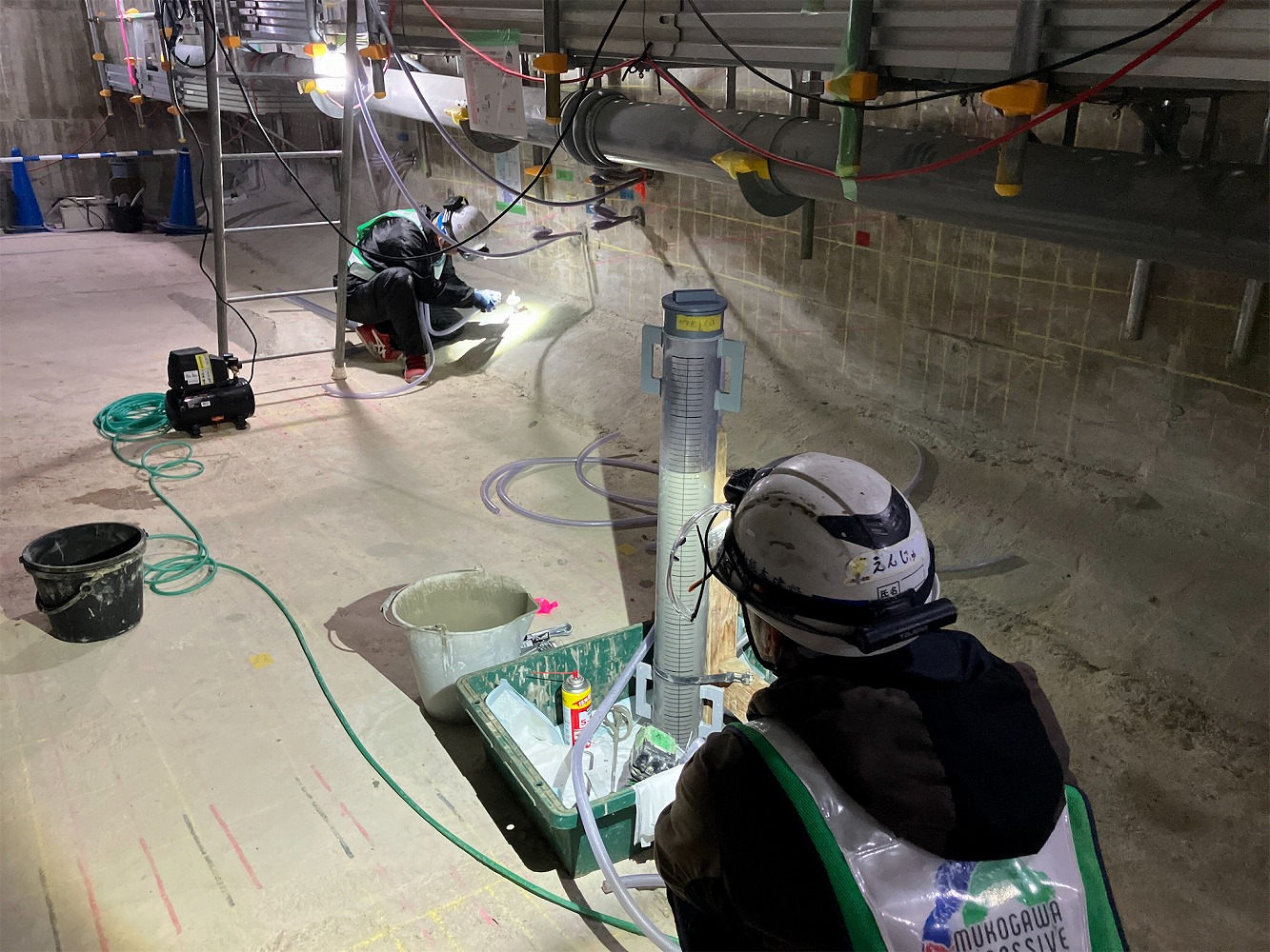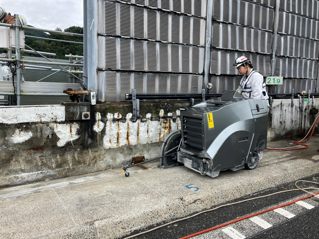 現在稼働中なのが武庫川橋で、PC箱桁においてグラウトの充填不足が確認されたため、リパッシブ工法で再充填作業中です。
