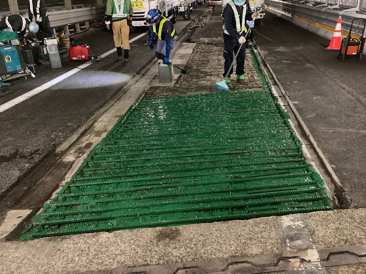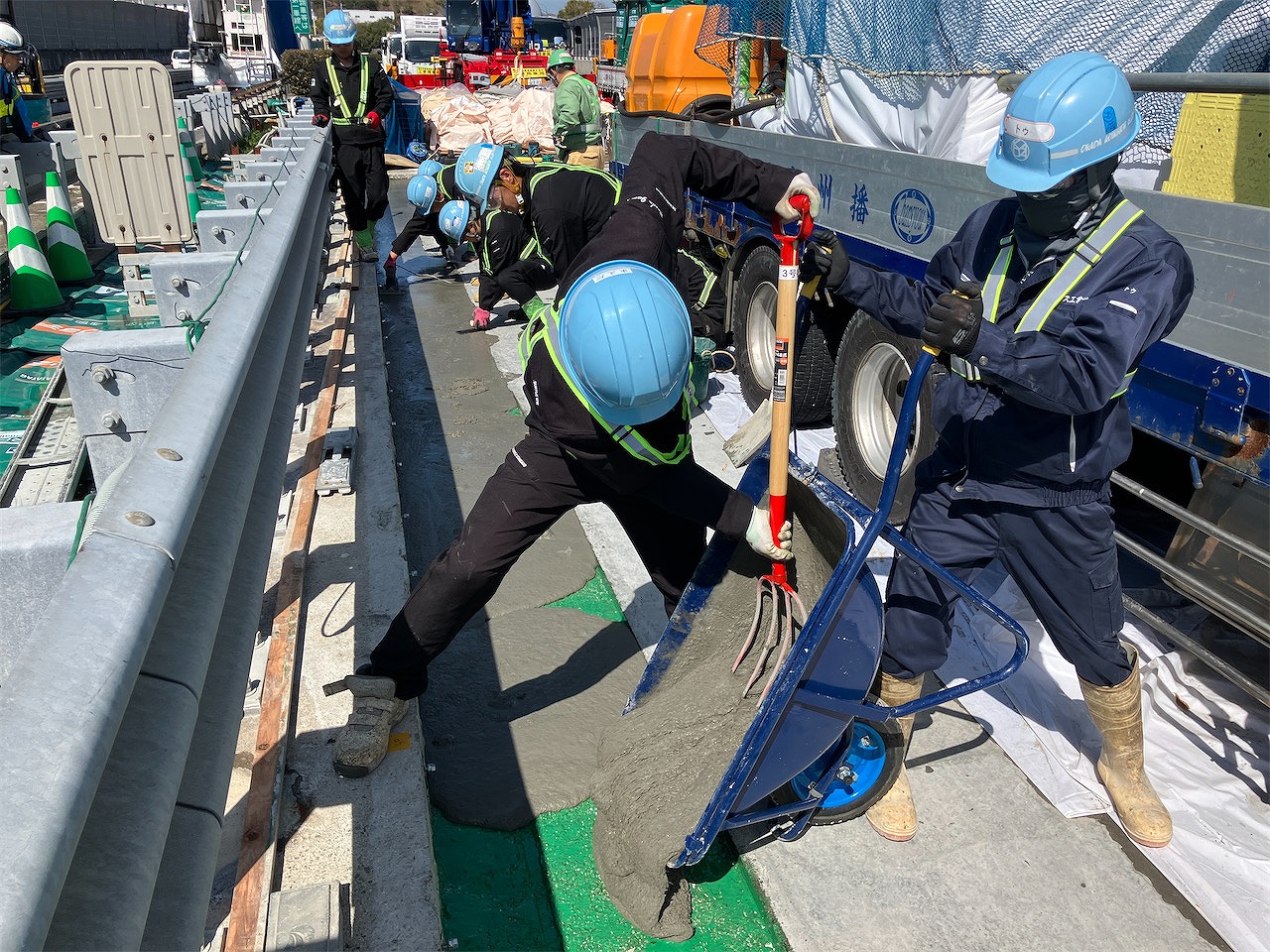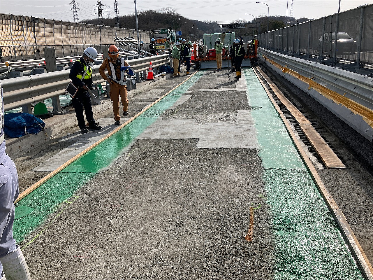 ――スティフクリートを打設した季節は? また既設床版界面の接着方法はどのような手法を採用しましたか