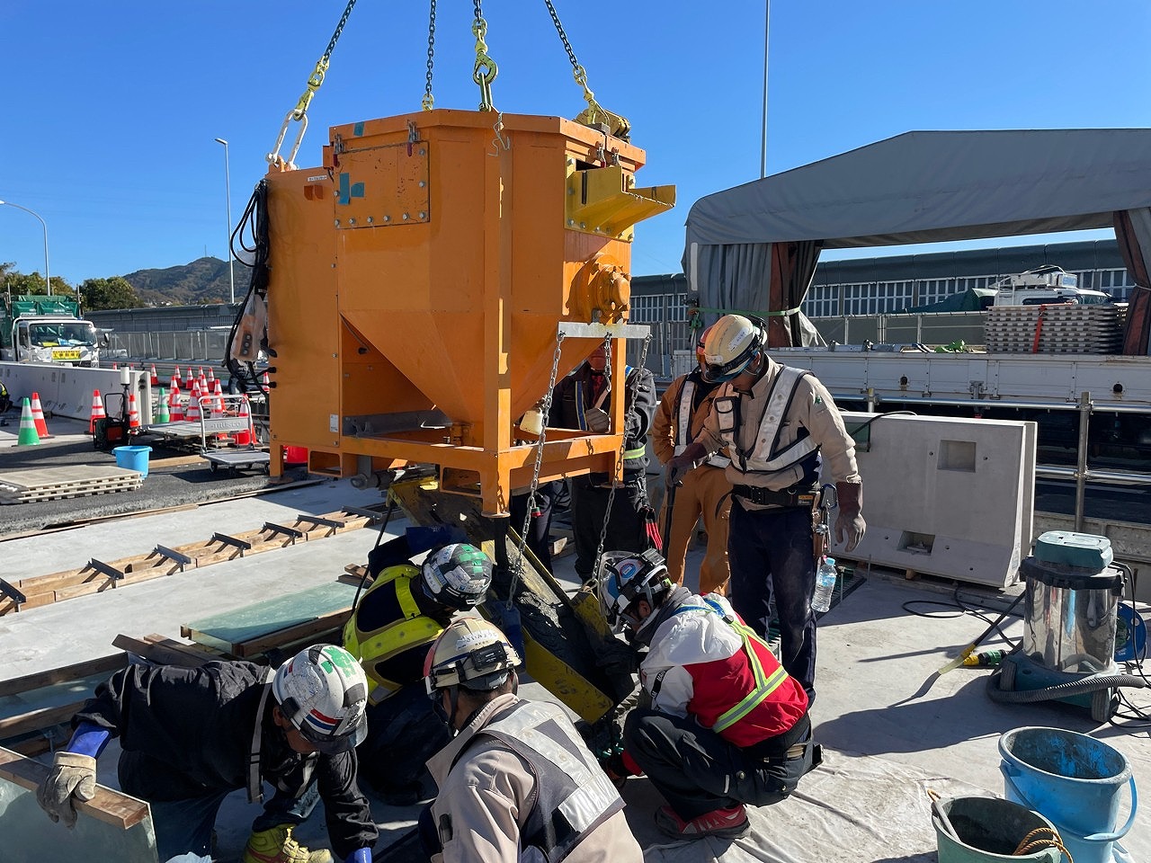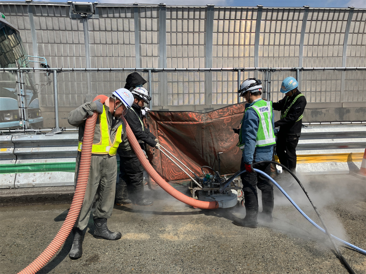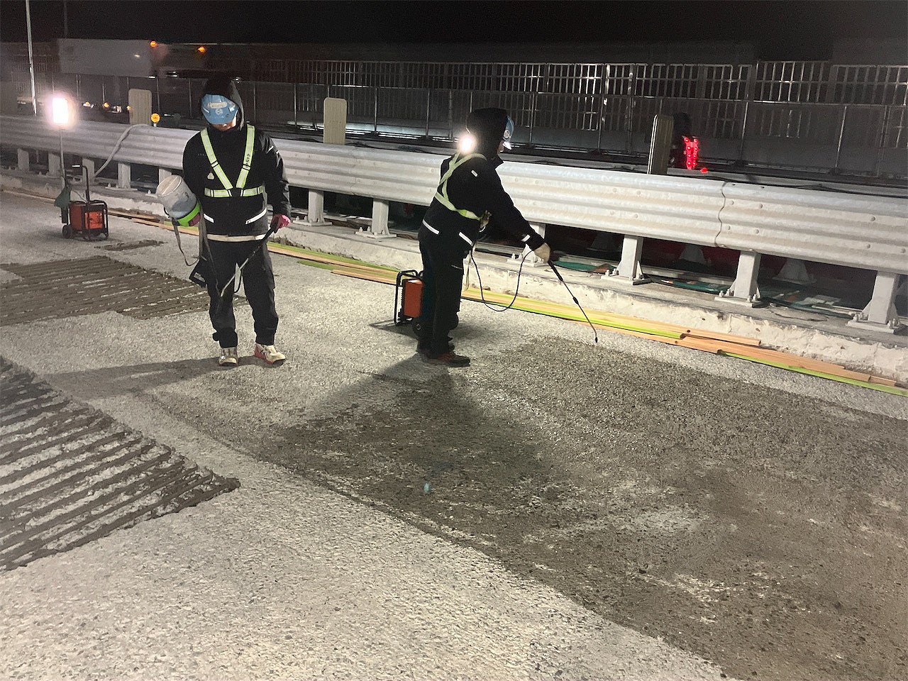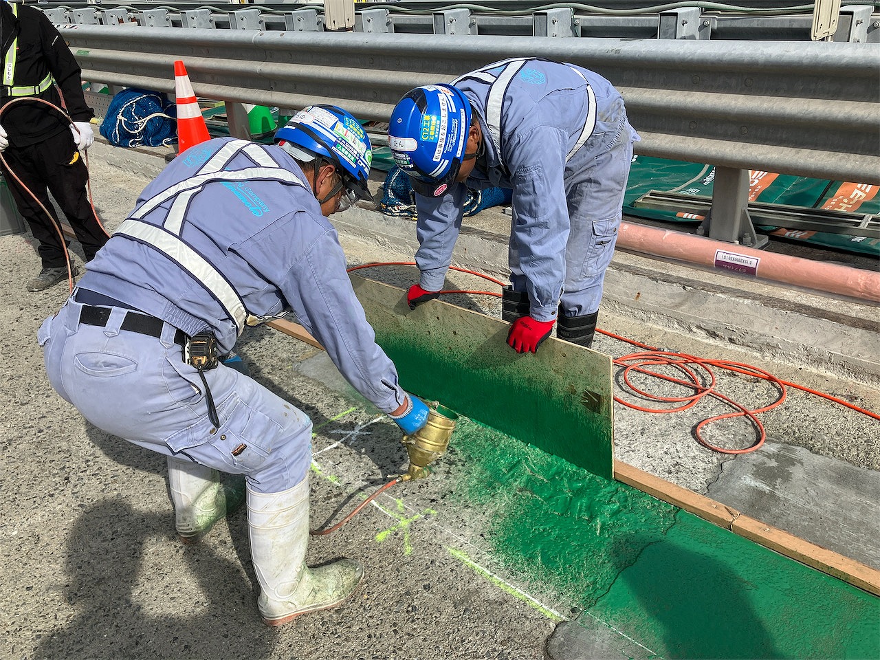 ――スティフクリートを打設した季節は? また既設床版界面の接着方法はどのような手法を採用しましたか