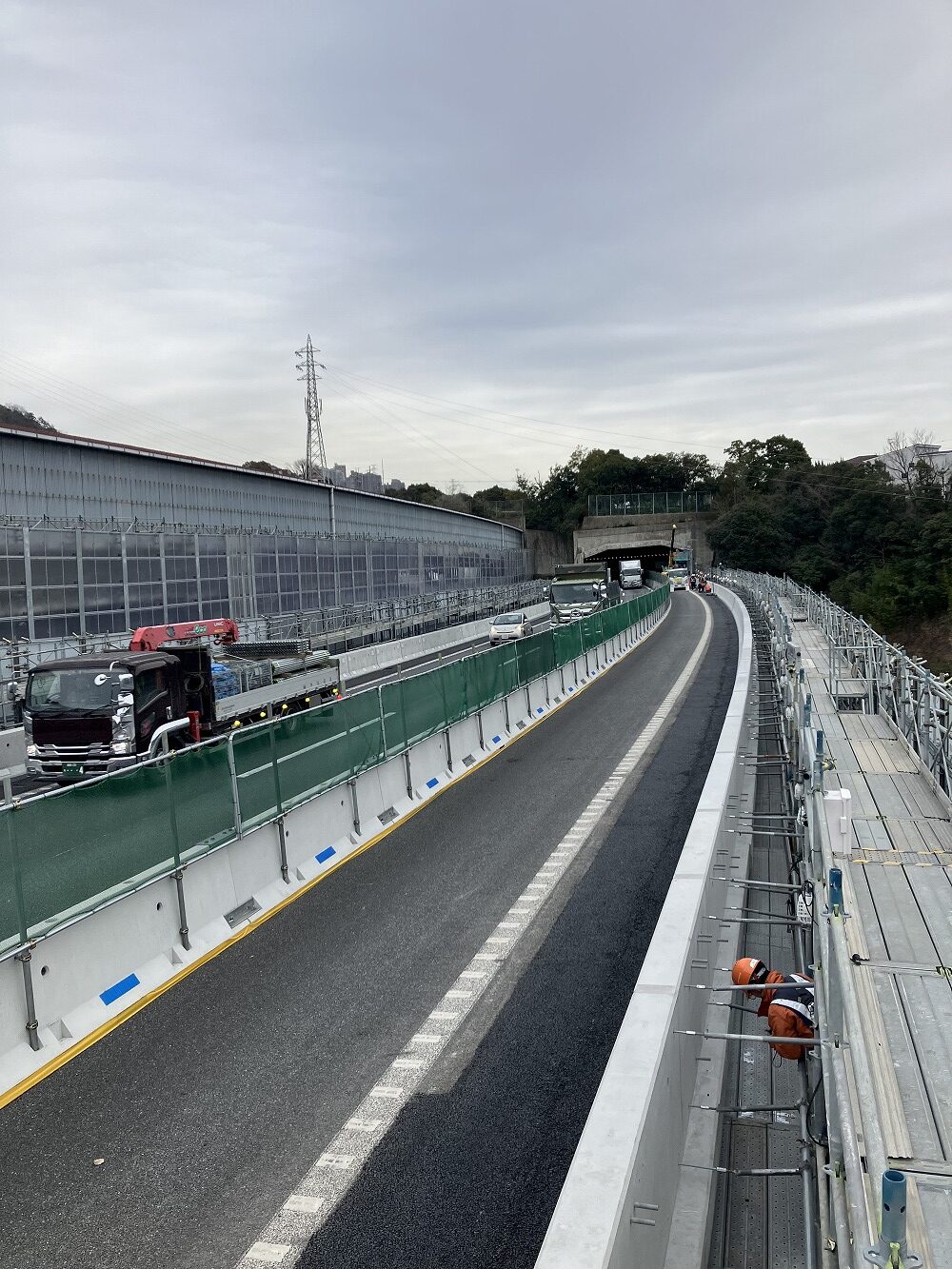 上り線の撤去についても令和7年度下半期(昨年の10月20日から10月31日)に夜間通行止めにより撤去を完了しています。現在は上り線の壁高欄の取替えを実施中で、今年秋頃まで続く予定です。それが終われば、新しい環境シェルターを今下半期に夜間通行止めを行い架設する予定です。