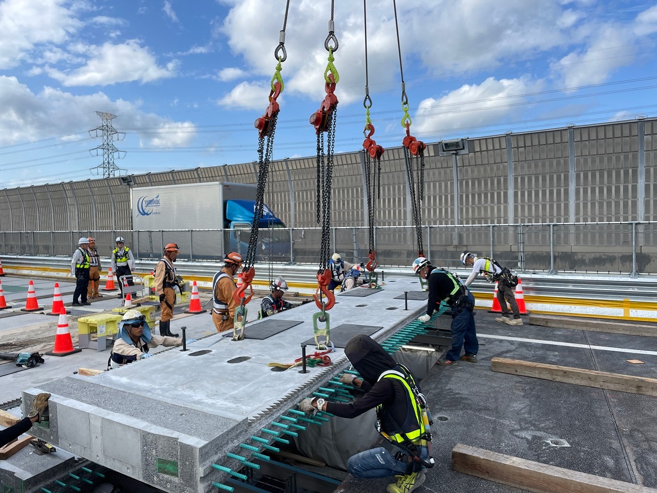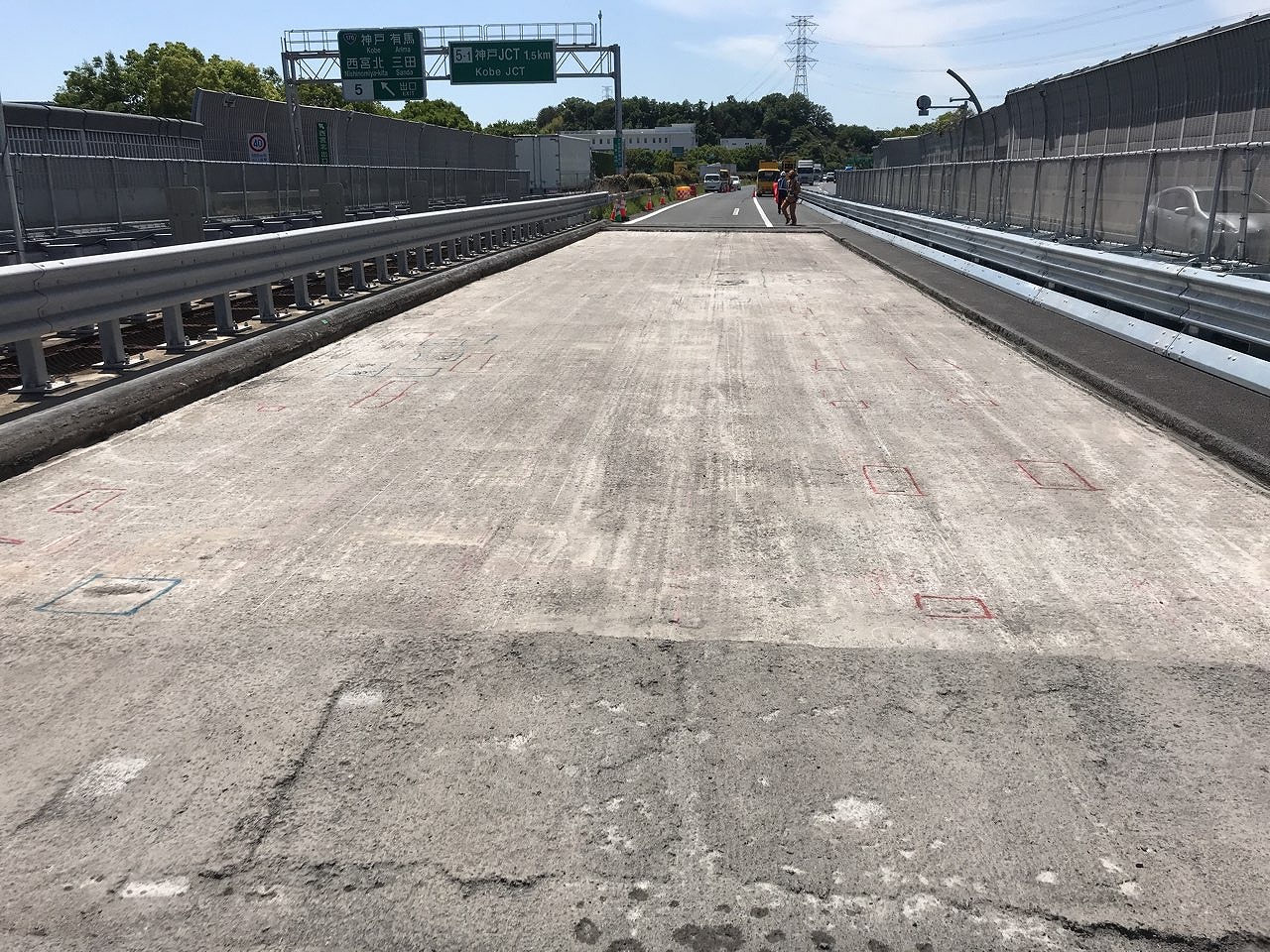 現在は、西宮北IC付近の有馬川橋の床版取替が完了しています。上下線とも完了し、このときにスリムクリート、スリムトップのプレキャストPC床版を採用しています。