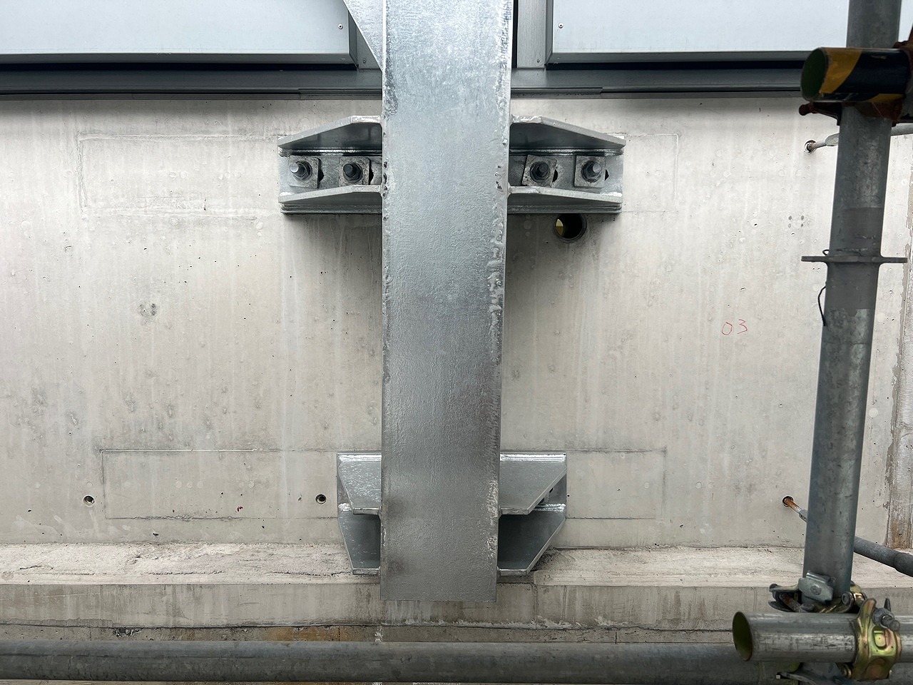 松井 シェルターは壁高欄天端に設置していましたが、当該路線は凍結防止剤を多く散布する路線です。基本的にはシェルター内では凍結防止剤を散布しませんが、シェルター外で散布された凍結防止剤が車両により引きずられて、壁高欄や柱ヒンジ部に付着します。シェルターがあるため降雨によって凍結防止剤が流れ落ちず、著しい腐食劣化の原因につながっていました。背面固定にすることで、凍結防止剤が直接固定部分にかからないよう配慮しています。