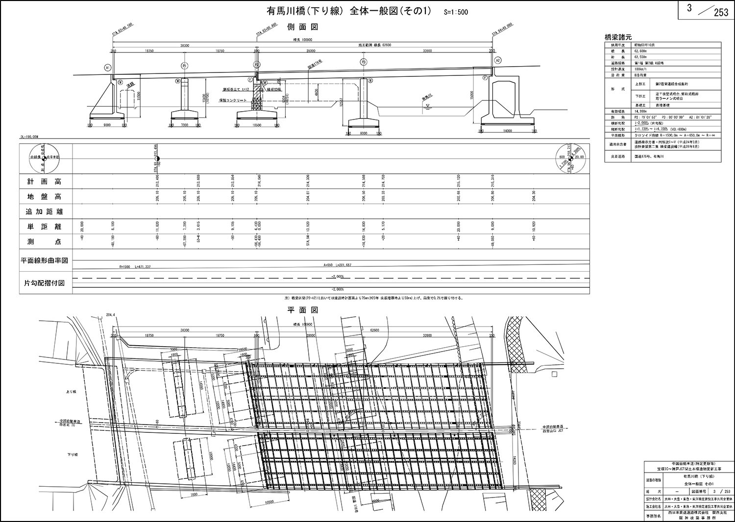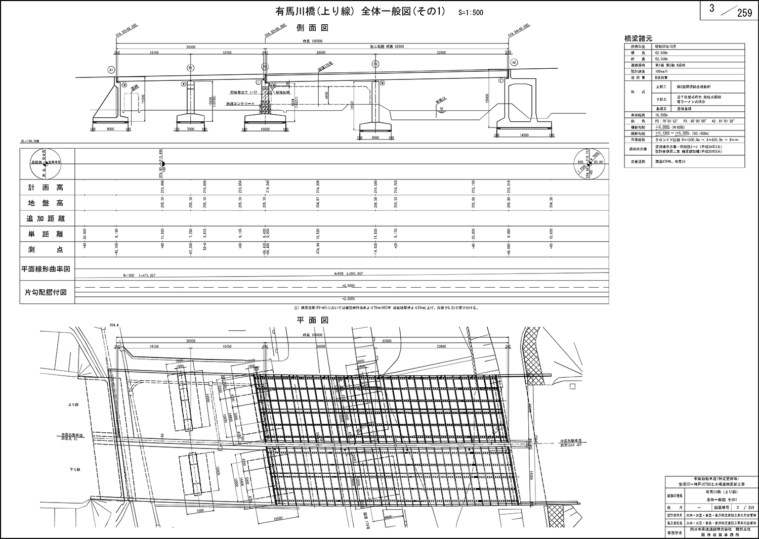 有馬川橋の上下線床版取替実施設計図